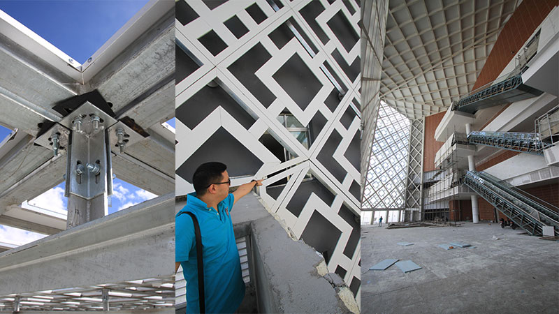 西藏自然科學(xué)博物館是向公眾展示人文和科技的空間,整個建筑呈帶狀布置,功能完善的展廳沿建筑北側(cè)布置,而南側(cè)為中庭和公共廊道,南立面高30米、寬120米、屋頂進(jìn)深達(dá)17米的多折面單層鋼網(wǎng)格結(jié)構(gòu)體系,使主立面無柱體系在超限結(jié)構(gòu)體系方面實(shí)現(xiàn)了充分挑戰(zhàn)。