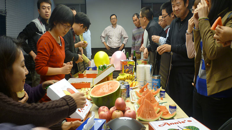 2011年3月25日,四川山鼎公司新入職員工和本月過生日員工,齊聚一堂,舉行了一場熱鬧又別開生面的聚會。張總、文總、各所(組)及行政部門負(fù)責(zé)人也參加了聚會。新鮮水果、各種零食、美味蛋糕,供同事們隨意取用,讓大家在緊張工作之余有了難得的放松機(jī)會。為了歡迎新員工,并深入了解四川山鼎的近況,張總通過大量詳實(shí)的圖片和資料,介紹了山鼎近期的幾個重要項目。