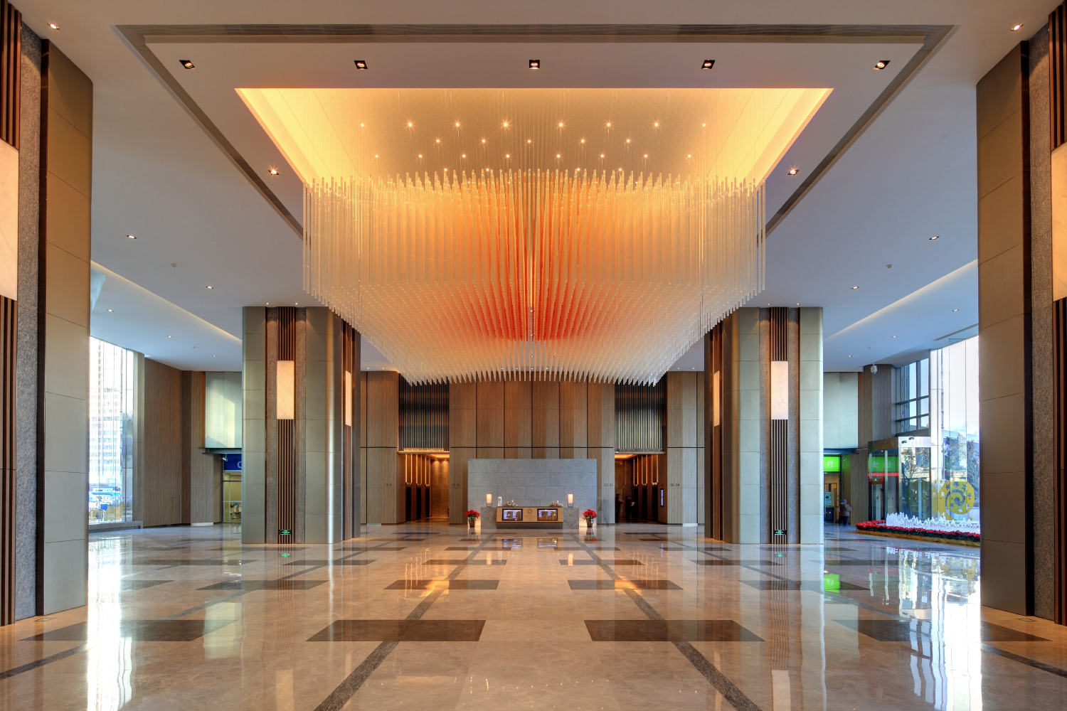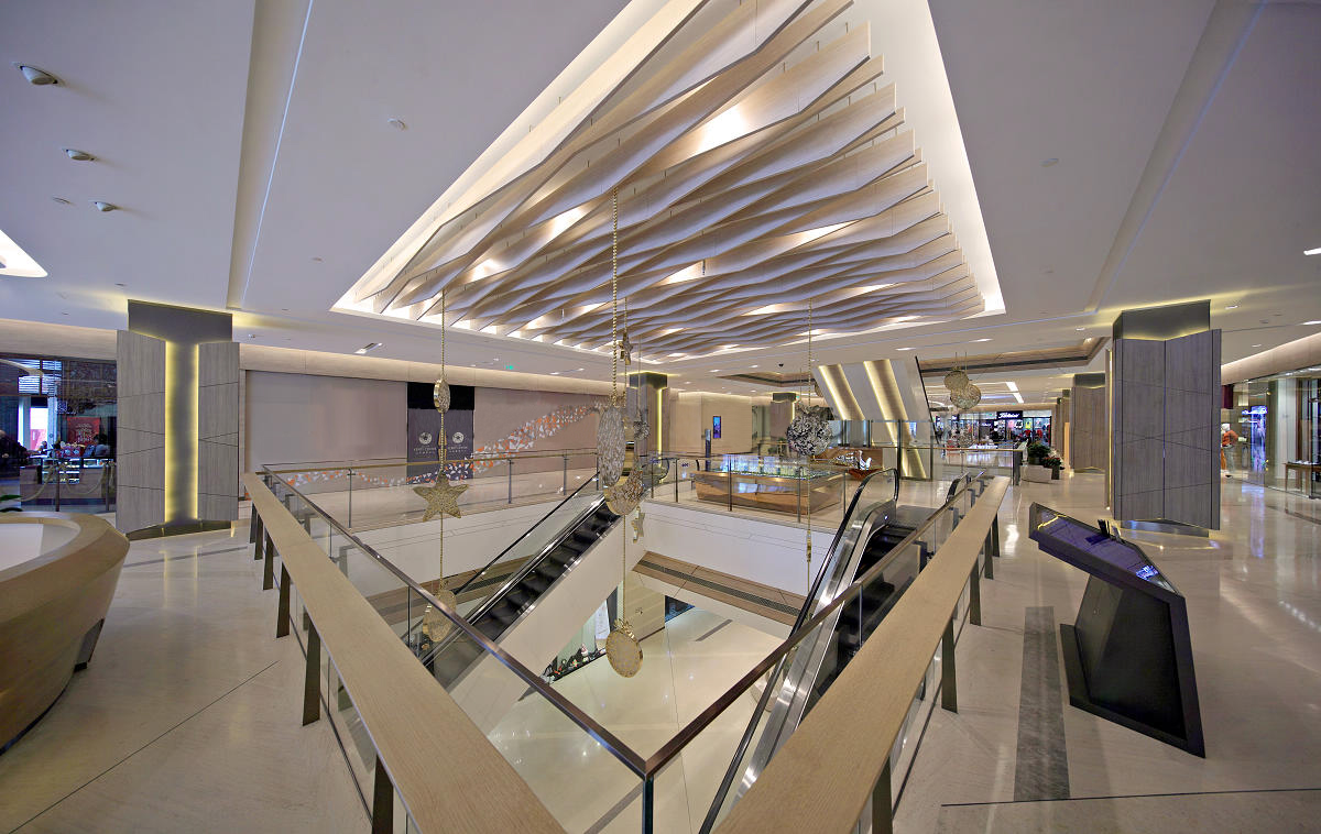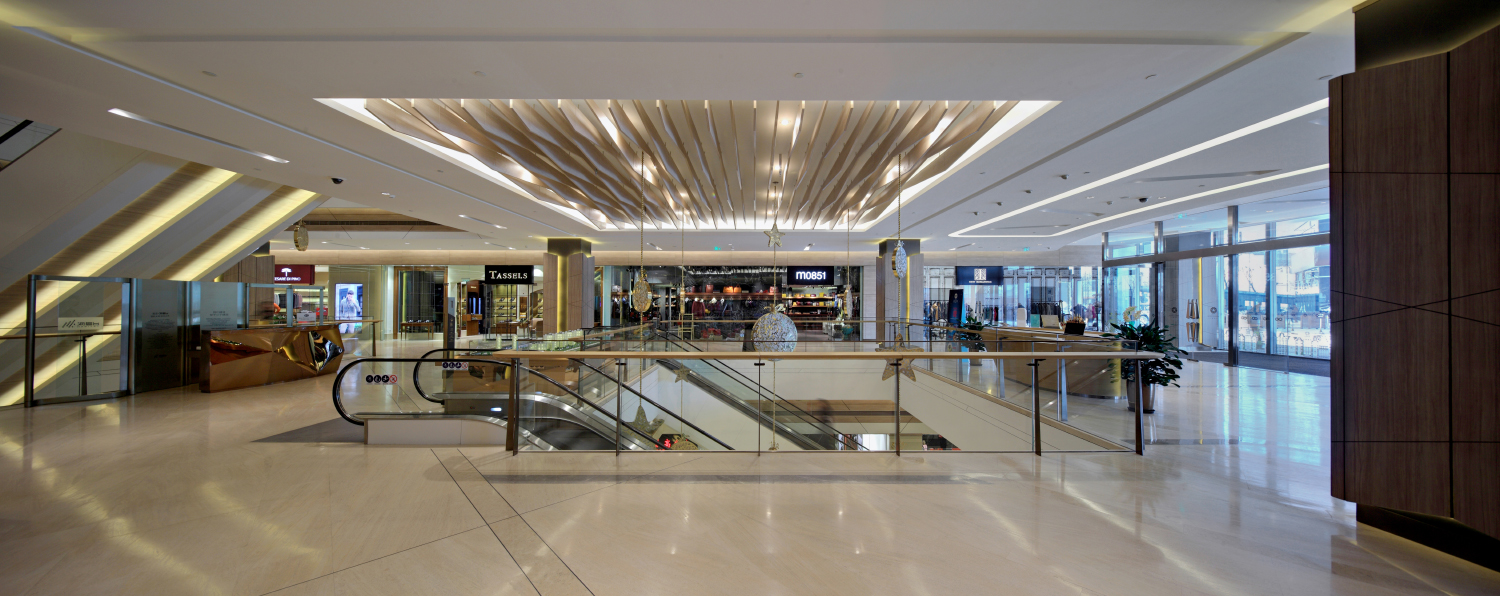本次改造主要包括地下車庫、后勤管理用房、商業(yè)、辦公樓大堂及標(biāo)準(zhǔn)層的公共區(qū)域、酒店式公寓及會所等整體室內(nèi)工程,以及室外城市廣場景觀、商業(yè)立面等。通過建筑、結(jié)構(gòu)、機(jī)電、室內(nèi)、導(dǎo)視、景觀、幕墻、照明等專業(yè)工程師的緊密配合,旨在通過創(chuàng)新型的現(xiàn)代設(shè)計手法和專業(yè)設(shè)計,重塑了嘉里中心的商業(yè)定位及其氛圍,提升了其商業(yè)價值與品質(zhì)。