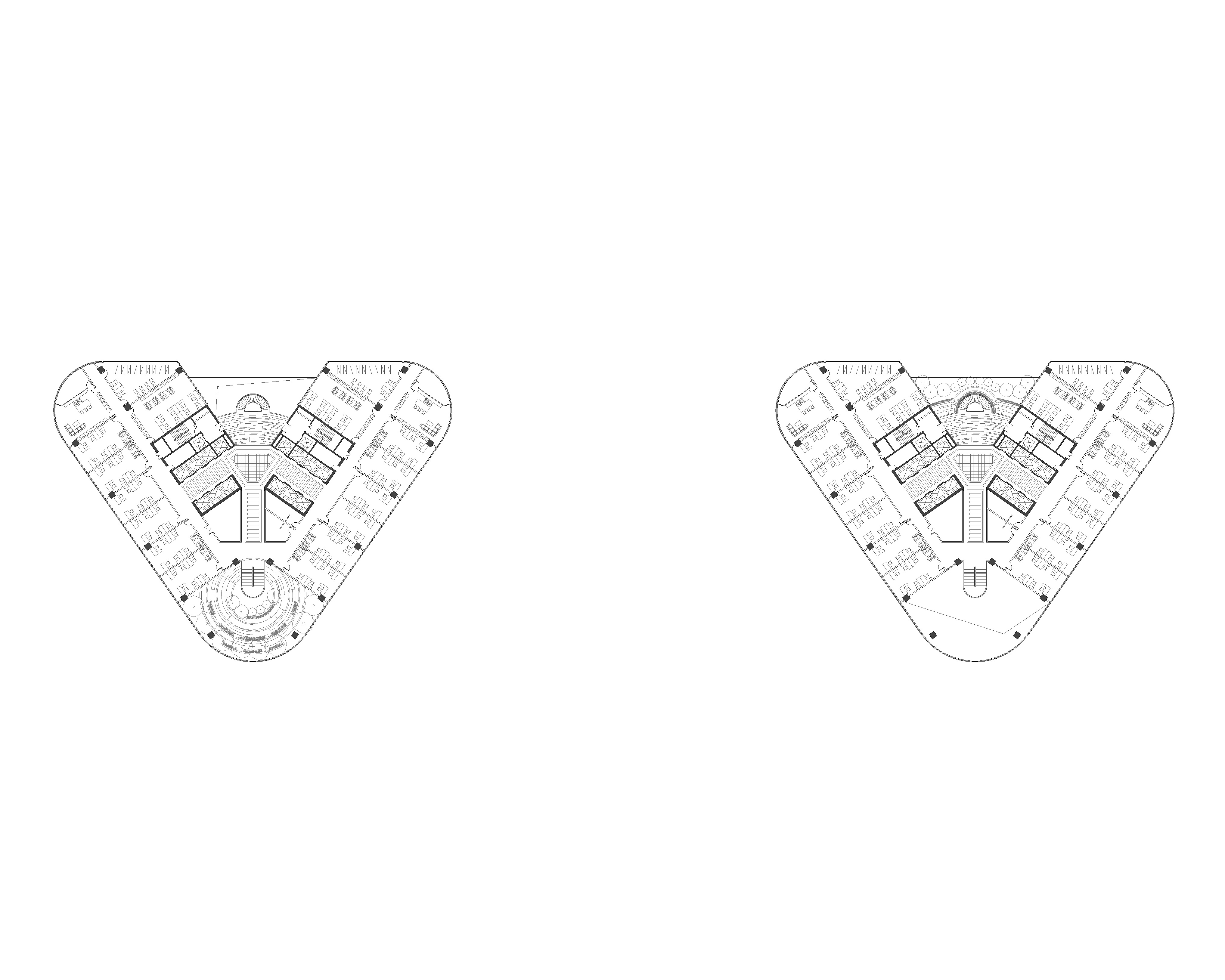 項(xiàng)目位于成都高新南區(qū),美麗的錦江河畔,兩棟塔樓分別作為新華文軒和新華發(fā)行集團(tuán)的總部辦公樓。塔樓體量巨大,建筑高度42層達(dá)180米,設(shè)計(jì)以“書山”為形象創(chuàng)意出發(fā)點(diǎn),三角形平面布局爭(zhēng)取了最大的錦江景觀觀賞面。
