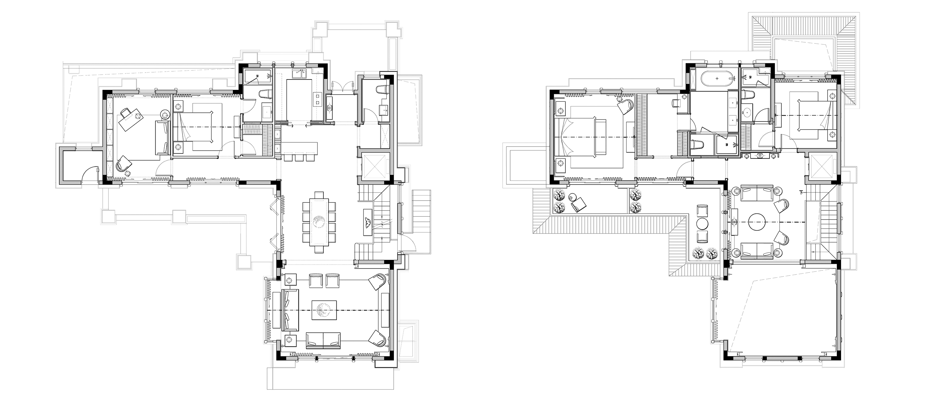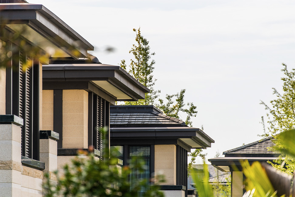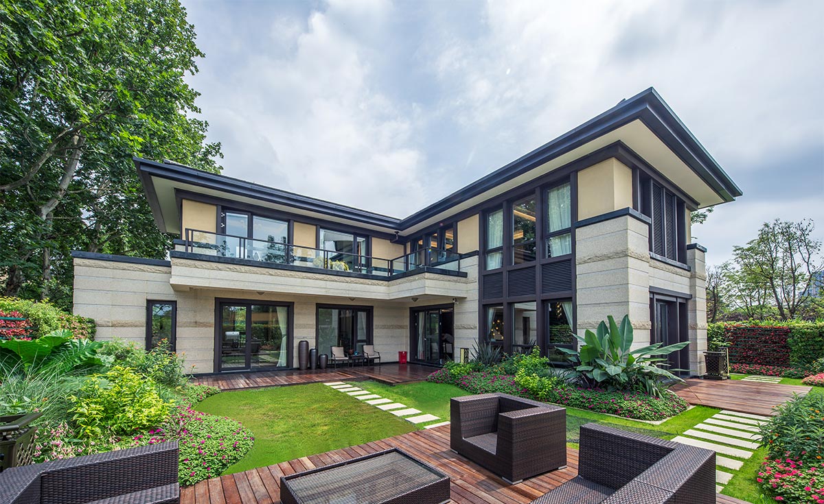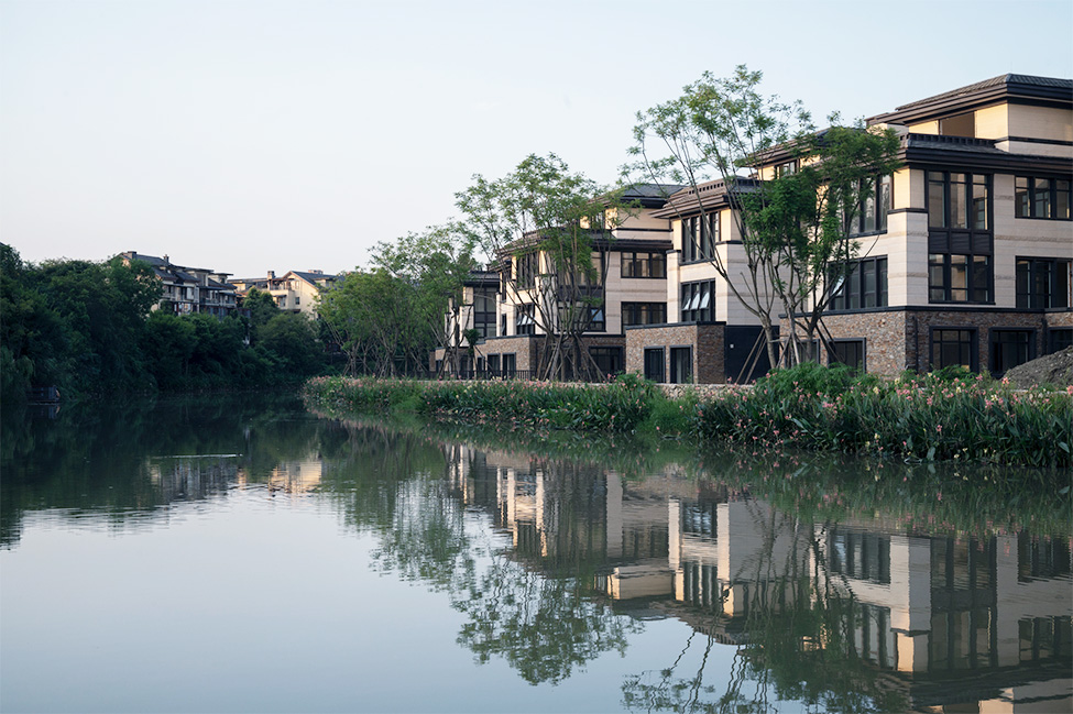 項(xiàng)目位于成都市金牛區(qū),為華僑城東岸六期地塊,三面臨水,南側(cè)為項(xiàng)目已建內(nèi)部道路。占地84,506平方米,有一層地下室,地面上由41棟2層住宅、10棟3層住宅和1棟2層服務(wù)用房構(gòu)成,總建筑面積:65,878平方米,其中地面以上30,000平方米 ,項(xiàng)目用地東西兩側(cè)靠景觀內(nèi)河,沿兩側(cè)布置大戶型住宅,保證大戶型住宅在小區(qū)中享有最大化的景觀資源,彰顯奢華品質(zhì);在用地中部打造內(nèi)聚性景觀,將較大戶型住宅作為一個(gè)組合整體布置于此;在中部與外側(cè)之間采用靈活的組合方式布置較小戶型住宅,充分利用外部景觀資源及自身的圍合景觀,使每戶均有良好的景觀朝向;在小區(qū)主入口設(shè)置商業(yè)用房,方便服務(wù)整個(gè)小區(qū)。