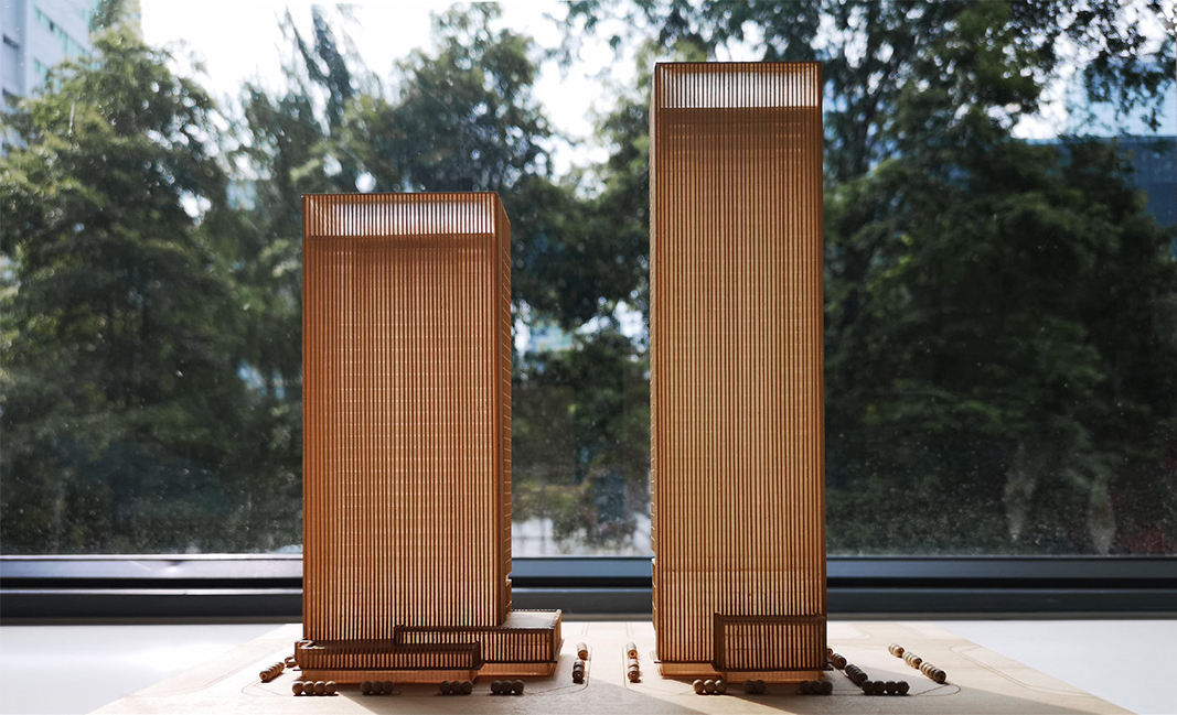 項目位于成都市天府新區(qū)中央商務區(qū),為該區(qū)域重大產(chǎn)業(yè)項目。用地位于中央生態(tài)帶和東西向軸線寧波路的交匯之處,地理位置極為重要。地面總建筑面積為21萬平方米,分為兩座35層和45層超高層塔樓,建筑高度分別為160米和220米。