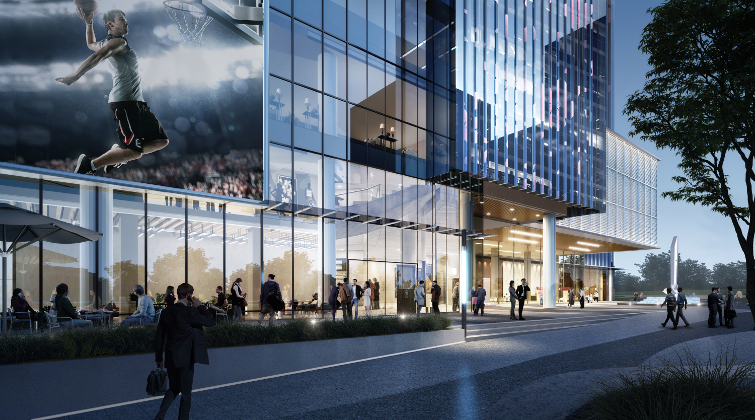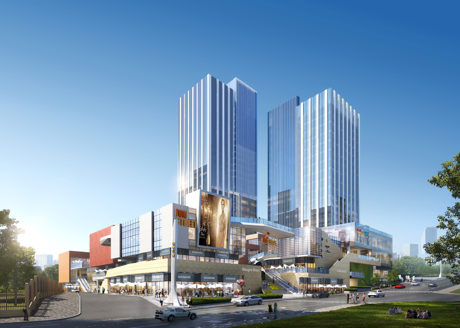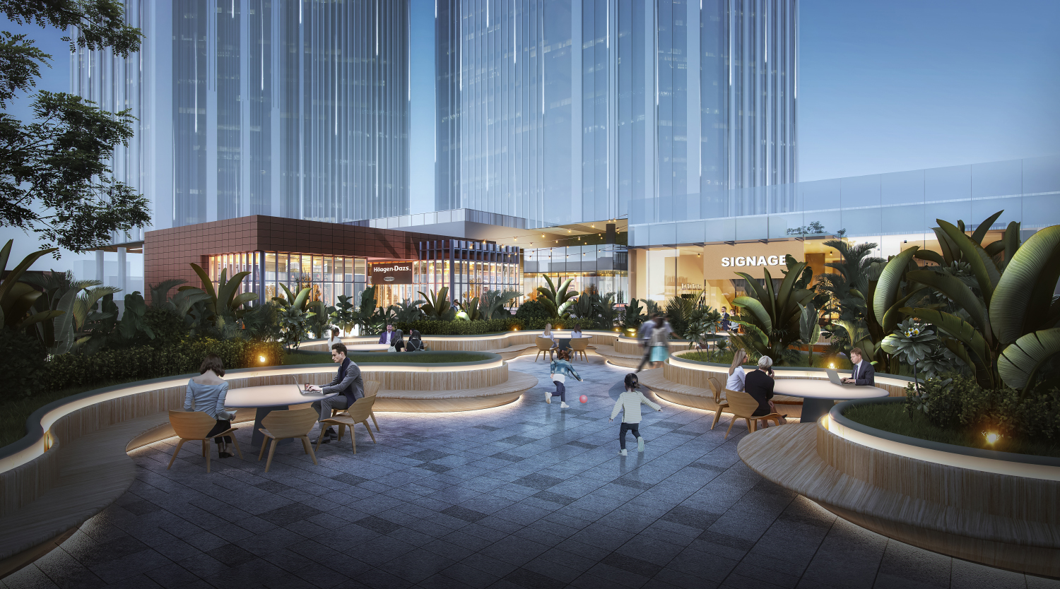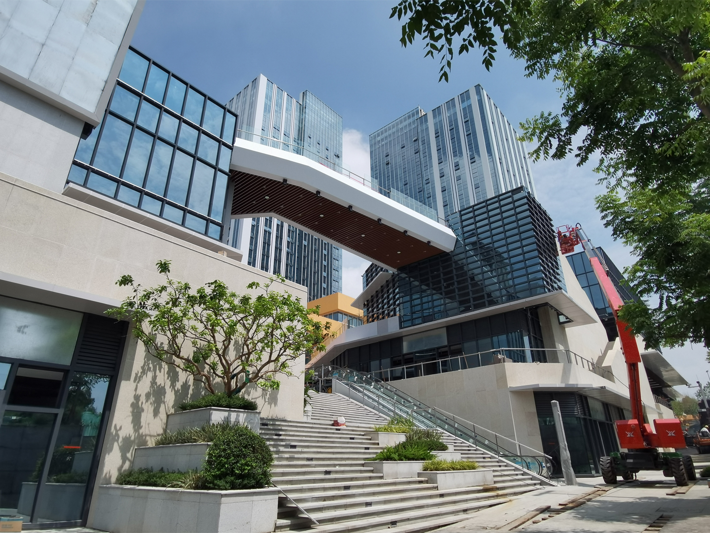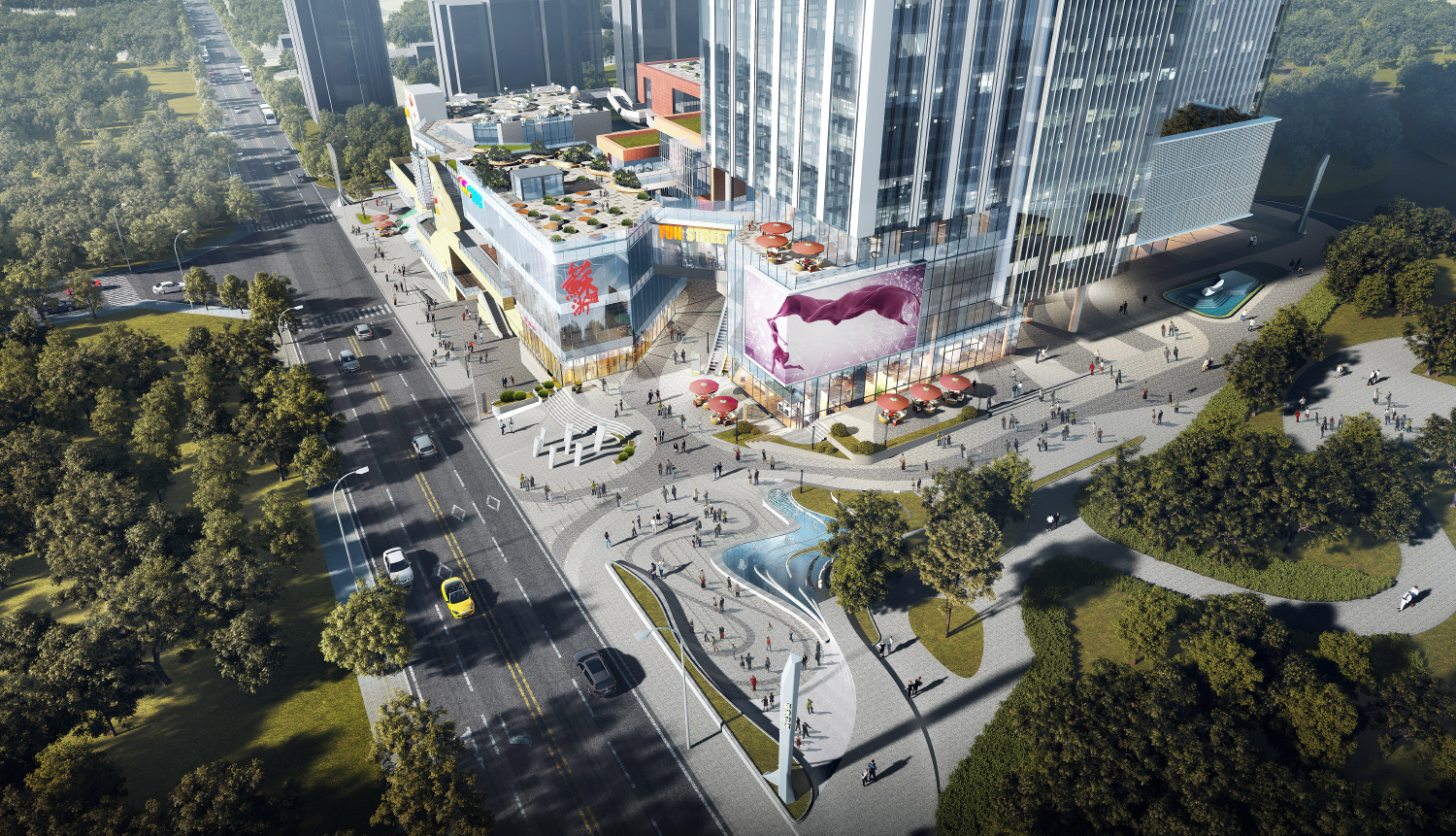 項(xiàng)目位于正公路與黃龍大道東南角,包括星級(jí)酒店、商務(wù)辦公及街區(qū)商業(yè)等。項(xiàng)目用地呈北高南低勢(shì),多首層的建筑空間將場(chǎng)地高差的挑戰(zhàn)轉(zhuǎn)化為靈活的到達(dá)空間,人流主要為周邊居民、產(chǎn)業(yè)員工以及商務(wù)人士,東西南三個(gè)方向?yàn)橹饕肆髁魅敕较?,以西?cè)為主。