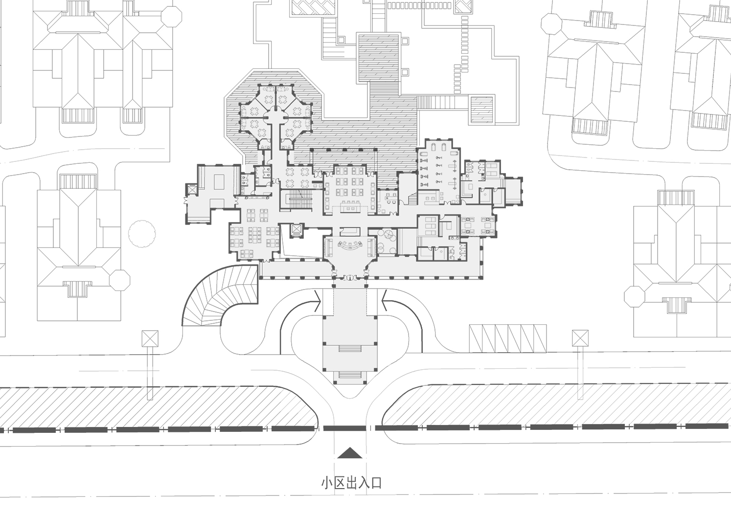 住宅區(qū)立面采用簡潔歐式的造型,主要用材為石材和劈巖石,建筑形象尊貴、大氣,呈現(xiàn)原汁原味的歐式風(fēng)情。
