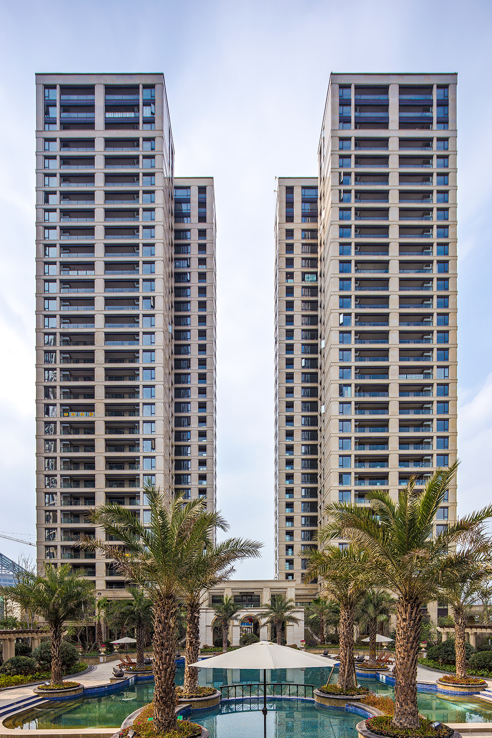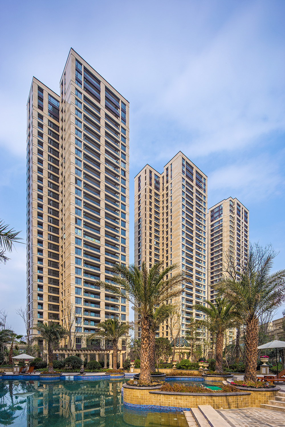 項(xiàng)目位于成都市南部新區(qū)石墻片區(qū),紅星路南延線西側(cè),東南臨錦江,西北側(cè)鄰近新益州城市公園。項(xiàng)目立面采用清新典雅的新古典主義風(fēng)格,強(qiáng)調(diào)橫向線條。高層住宅頂部三層采用整體通透的處理手法,底部采用厚重的體量處理手法,中段采用節(jié)制而生動(dòng)的局部橫向線條,強(qiáng)化立面節(jié)奏和韻律,形成古典主義建筑經(jīng)典的三段式做法,突出新古典主義建筑的比例之美。建筑風(fēng)格在追求高尚住區(qū)的尊貴氣度的同時(shí)也兼顧與城市風(fēng)貌的契合。沿街商業(yè)采用大開間布局,并置形成城市街道界面的韻律感。建筑細(xì)部及材質(zhì)強(qiáng)調(diào)細(xì)部的比例協(xié)調(diào),近黃金比例的洞口尺度,配以柱式和線腳的點(diǎn)綴與裝飾,在近人尺度上增加了建筑的豐富性。