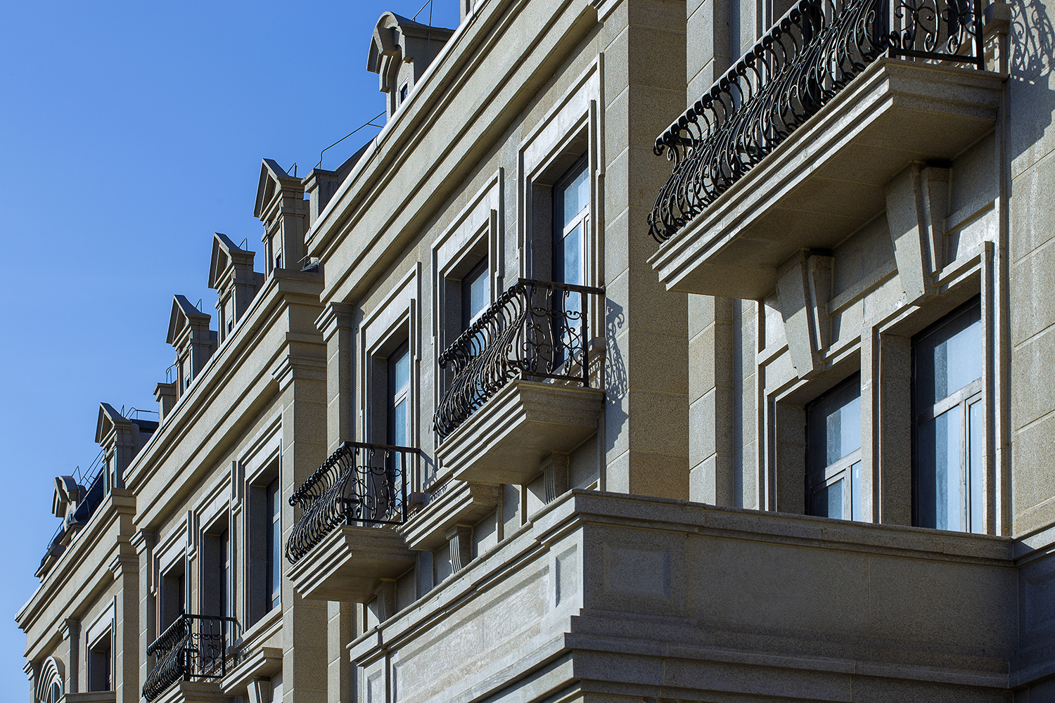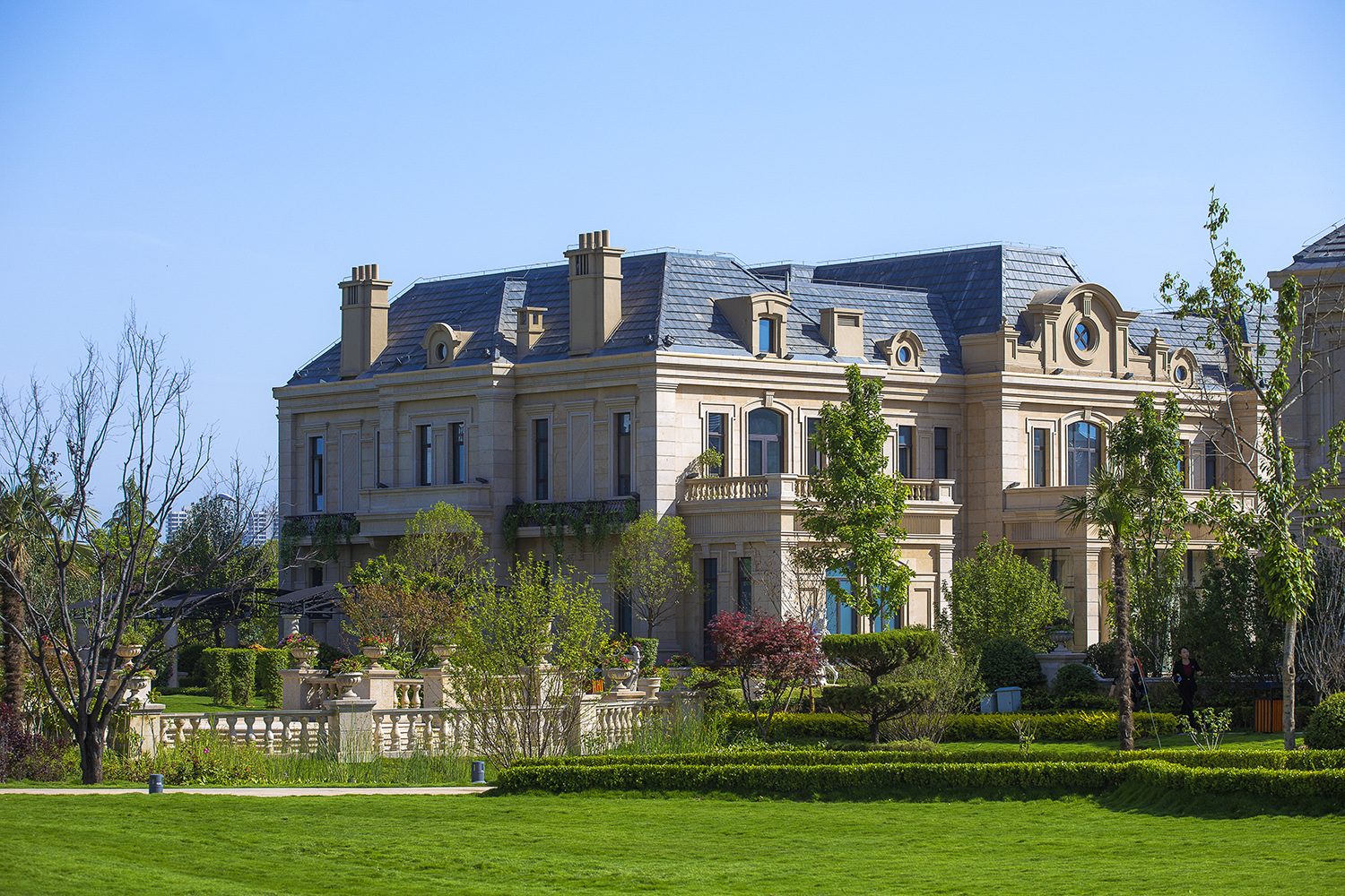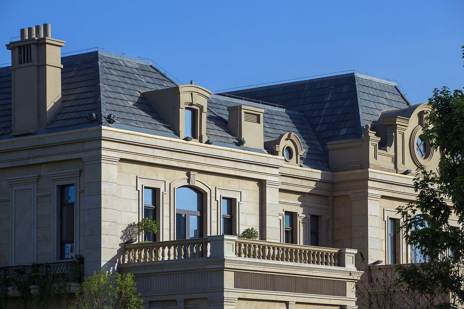聯(lián)排式住宅有濃郁的西方古典風格,設計通過巧妙的合院式組合,使得每戶都有充足的陽光及私家庭院。外墻采用干掛石材飾面,斜屋面為藍灰色波形瓦,點綴小區(qū)的尖塔,其浪漫氣息彰顯了樓盤與目標客戶的品質(zhì)。