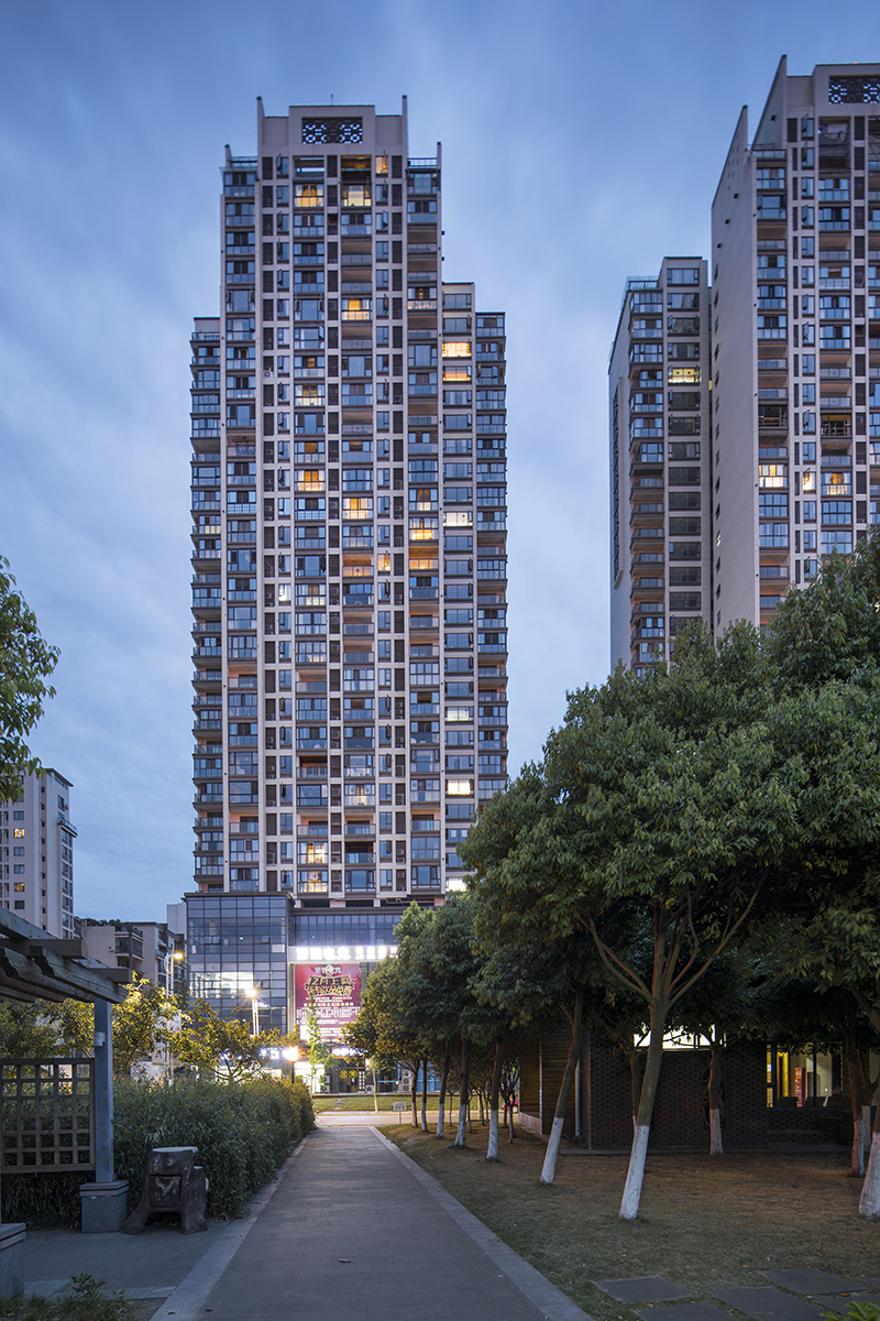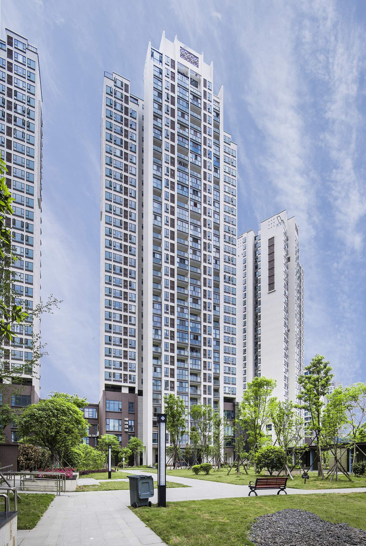項目位于德陽市經(jīng)濟技術開發(fā)區(qū)中心地段,屬于德陽市重點發(fā)展區(qū)域。項目西側緊鄰市政南湖公園景觀朝向極佳,北側和西側分別為天上南路和峨眉山路,交通便利,區(qū)域優(yōu)勢明顯。沿用地西側南湖公園設置城市商業(yè)及100米點式高端住宅,濱水公園、江景一覽無余,便于人流的引入及城市形象的塑造。場地中心區(qū)域點式、板式高層延續(xù)一期的半圍合布局,更注重空間的通透性,形成多個大尺度中心庭院。