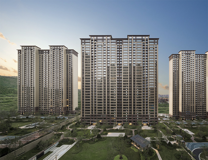 項目位于濟南城市東進主軸線上,濟南向東發(fā)展咽喉地帶,毗鄰蓮花山,周邊的人文自然景觀無不是天然理想的棲居之所。在這里只有簡約又不失內(nèi)蘊的現(xiàn)代理性建筑風格才能盡顯都市生活的豪華與貼近自然的爛漫情調(diào),提供人文居住的絕佳意境。項目采用改良的現(xiàn)代理性風格建筑形式,吸收先進建筑基調(diào)的精華,通過典雅大氣的建筑形式和莊重氣質(zhì)的景觀設計營造出自身特有的氣質(zhì)內(nèi)涵,在彰顯自身個性的同時,以一種優(yōu)雅的姿態(tài)融入簡約、典雅、親近自然的總體氛圍中。建筑成組團布置,錯落有致,每一戶都能享受園林社區(qū)的優(yōu)美庭院景觀。建筑高度跟隨臺地高差起伏變化,形成豐富的城市界面。景觀設計與建筑設計相協(xié)調(diào),通過多層級大小庭院串聯(lián)等景觀手法,體現(xiàn)項目大氣、優(yōu)雅的氣質(zhì)。