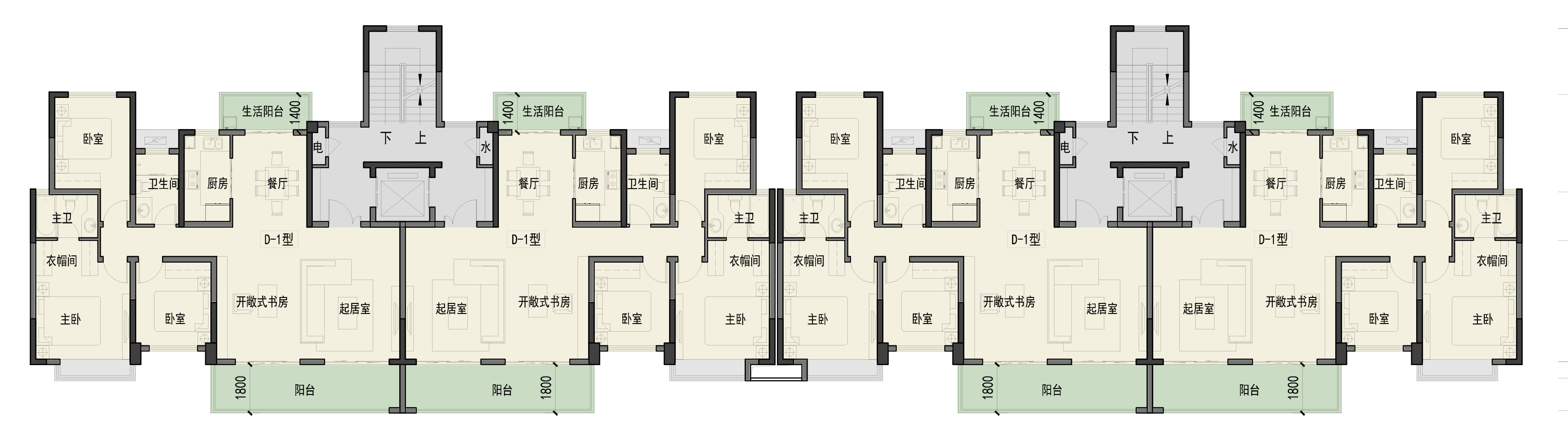 高層塔樓的立面設(shè)計(jì)采用簡(jiǎn)潔的豎向線條結(jié)合設(shè)計(jì)細(xì)節(jié),立面大氣雅致、挺拔有力。多層及中高層建筑的立面,強(qiáng)調(diào)橫向線條的延展,建筑簡(jiǎn)潔、舒展。創(chuàng)造出了豐富的空間變化效果。7米寬超大采光陽臺(tái)讓居民盡享陽光權(quán)。同時(shí),遵循經(jīng)濟(jì)適用的原則,充分考慮生活習(xí)慣中的個(gè)性化細(xì)節(jié),將戶型做到功能分區(qū)明確,房間尺寸合理實(shí)用。位于東側(cè)的疊拼多層住宅采用出挑陽臺(tái)設(shè)計(jì),房間后退,形成露臺(tái),居民可以在這里運(yùn)動(dòng)、休憩、納涼,享受陽光,感受“天人合一,物我兩忘”的境界。