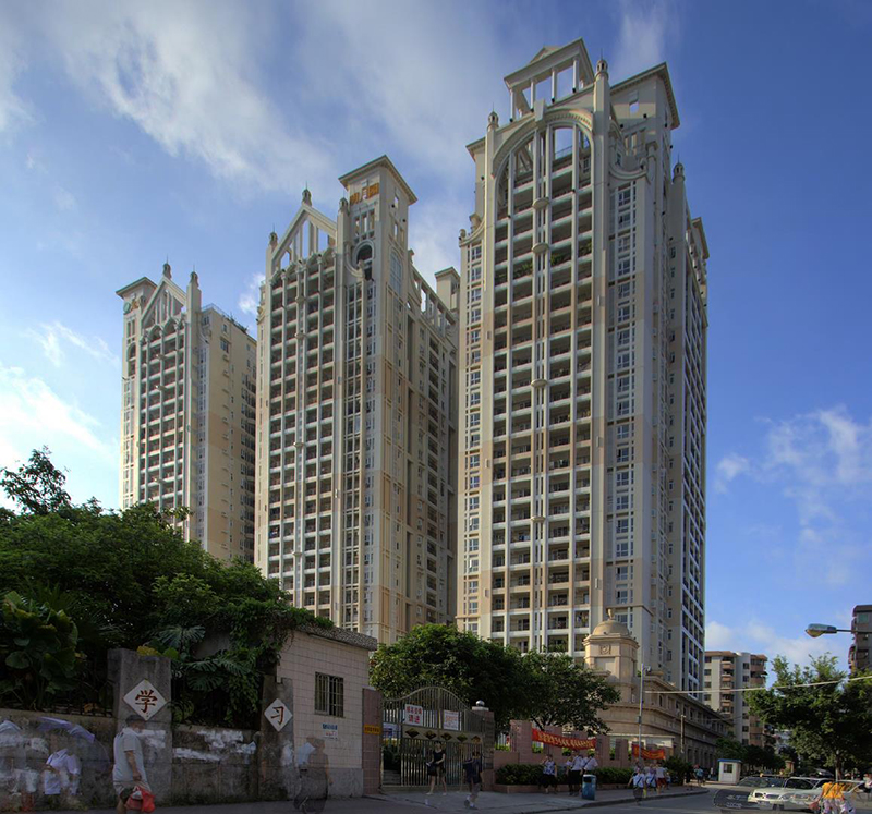 項目是集商業(yè)、休閑、居住于一體的高檔住宅小區(qū)。項目是在原有建筑上的整體重新設(shè)計改建和擴(kuò)建,由三座塔樓組成,分別命名為多倫閣、昆倫閣、英倫閣?!暗吕姿诡D-明月園”想要表達(dá)骨子里透出的威嚴(yán)、氣勢和莊嚴(yán),我們特意把北京人民大會堂的縮影搬進(jìn)住戶大堂、把愛琴海放到25樓的復(fù)式花園。新的理念和設(shè)計賦予了舊建筑嶄新的生命,也更好地詮釋了廣州:一個獨具文化包容、東西方思想結(jié)合的新型現(xiàn)代化都市。