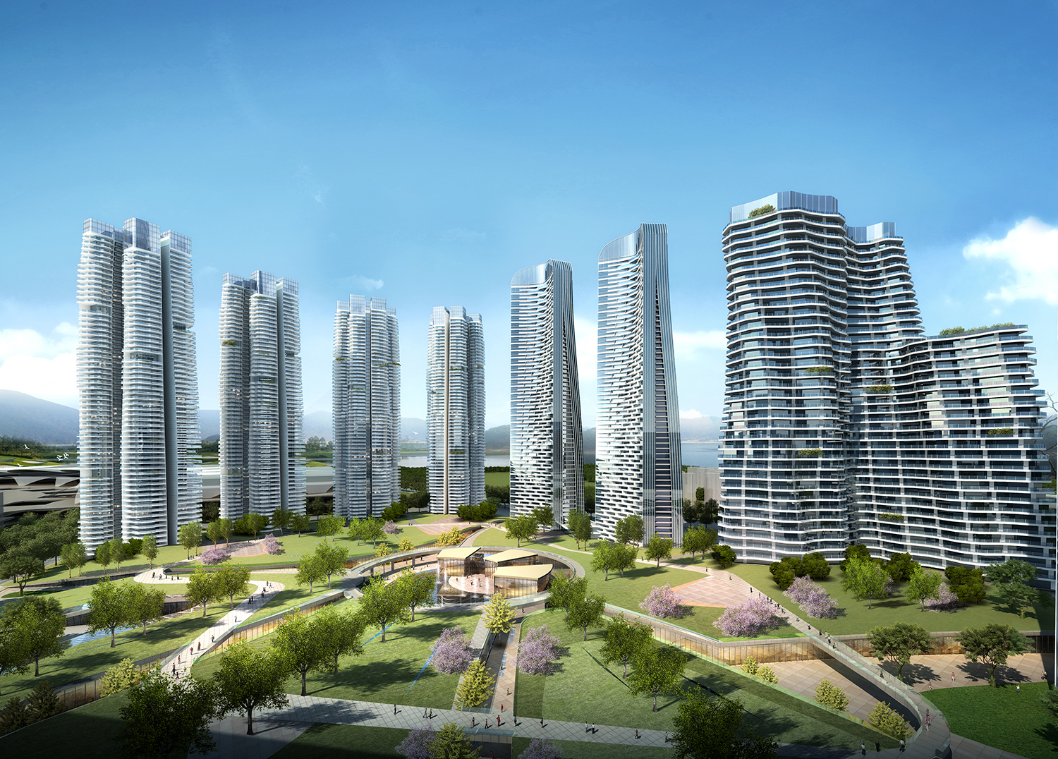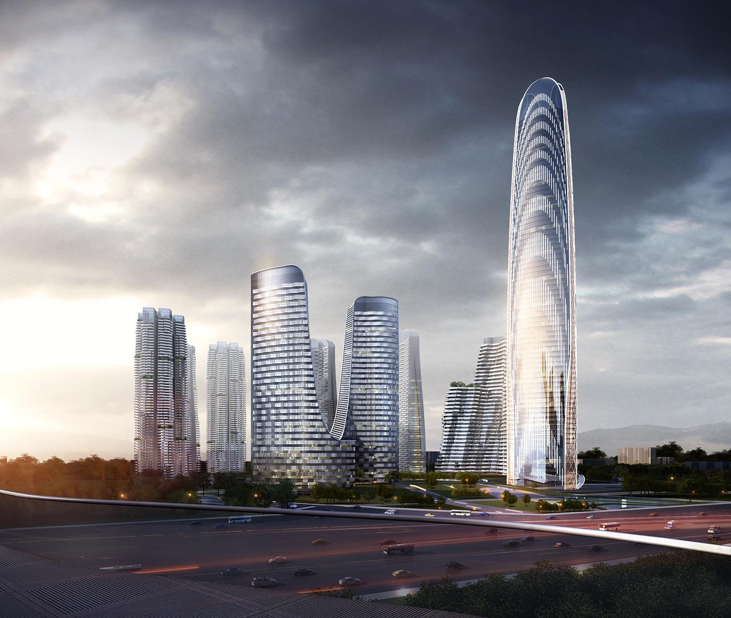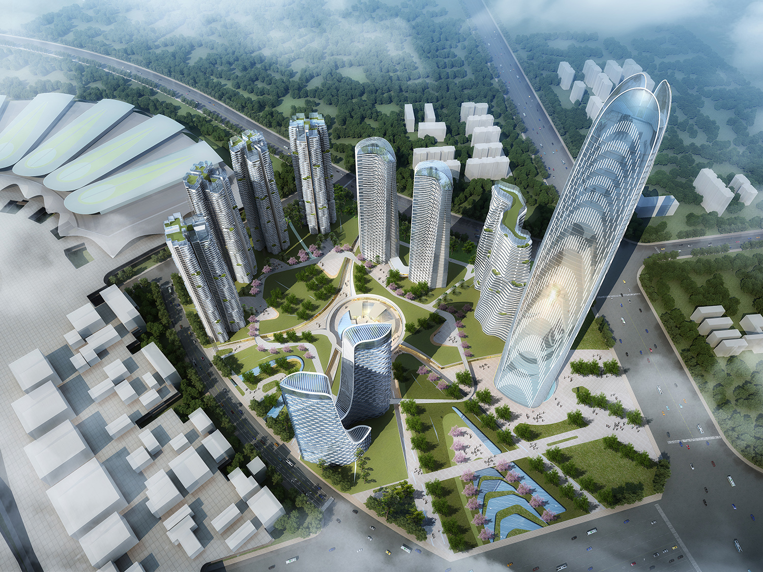 規(guī)劃理念:創(chuàng)建符合會(huì)展區(qū)域,利于城市形態(tài)展示的地標(biāo)建筑形態(tài),形成高低搭配,錯(cuò)落有致的城市空間;充分對接西側(cè)民俗商業(yè)街,南側(cè)海洋館,串聯(lián)濕地公園,打造開放式街區(qū);通過建筑斜向覆土化處理,無縫鏈接城市綠化體系打造中央公園,實(shí)現(xiàn)綠地面積最大化;利用塔式建筑分散布局于中央公園,最大化利用景觀視野,豐富城市天際形態(tài);塔樓錯(cuò)落布置,互不遮擋,主要房間均朝向滇池及中央公園,充分利用景觀資源,最大化延長建筑景觀面;愿景:充分對接周邊城市功能,完善會(huì)展區(qū)域城市使命。