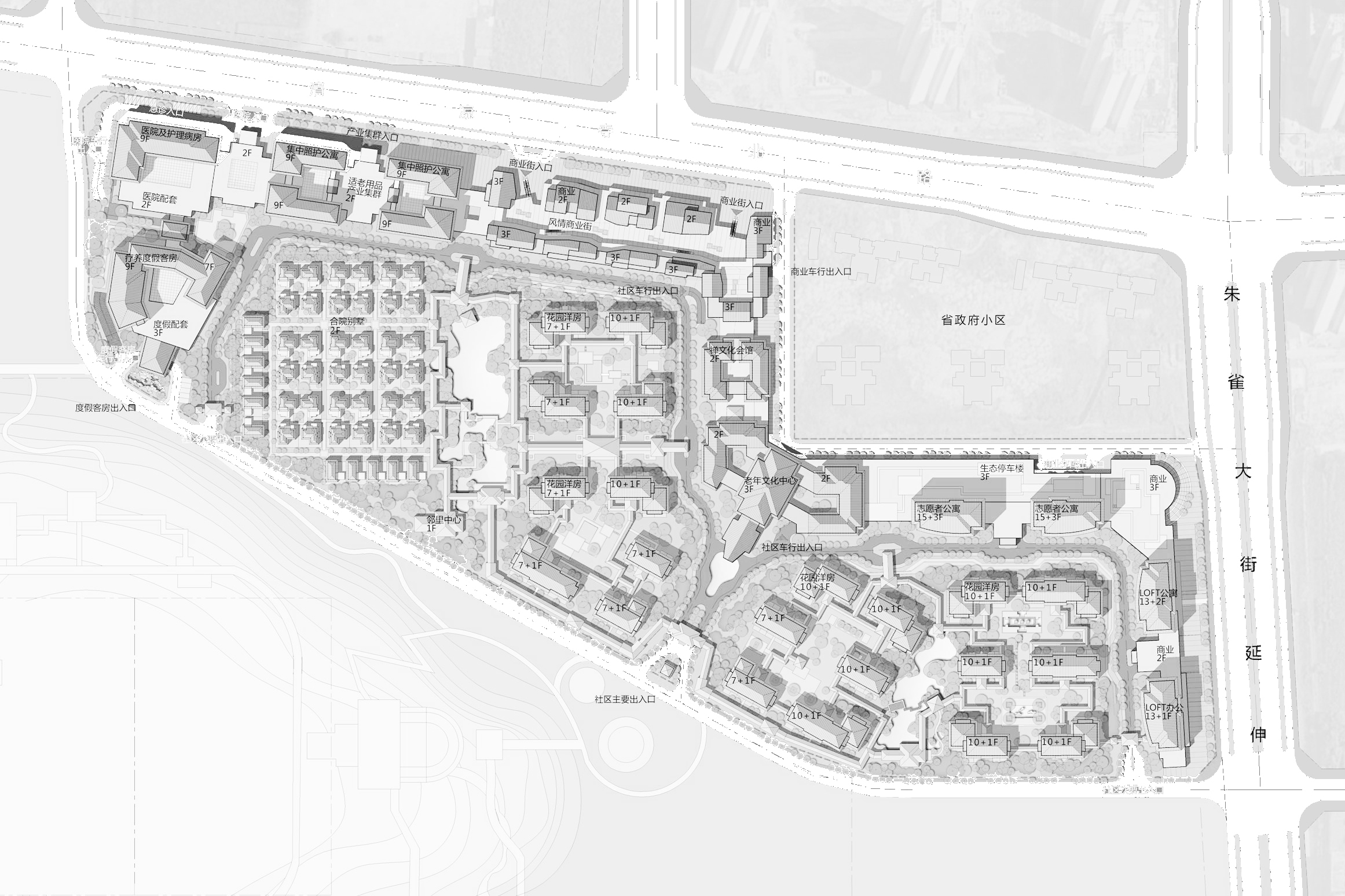 項目位于長安區(qū)與雁塔區(qū)的交界處,依附清涼山森林公園獨有的環(huán)境景觀資源,天然舒適的溫泉、城市近郊、環(huán)境優(yōu)美、交通便利,為養(yǎng)老社區(qū)的打造提供了獨有的自然條件。設計引入溫泉主題度假酒店、酒店式服務公寓,來滿足旅游分時度假、健康休閑功能服務需求。項目最終將打造成:高端養(yǎng)老養(yǎng)生的一站式消費、服務、休閑中心。