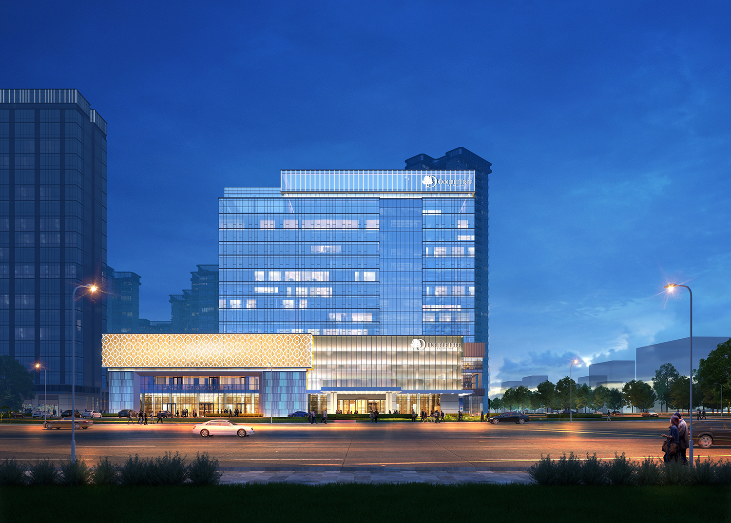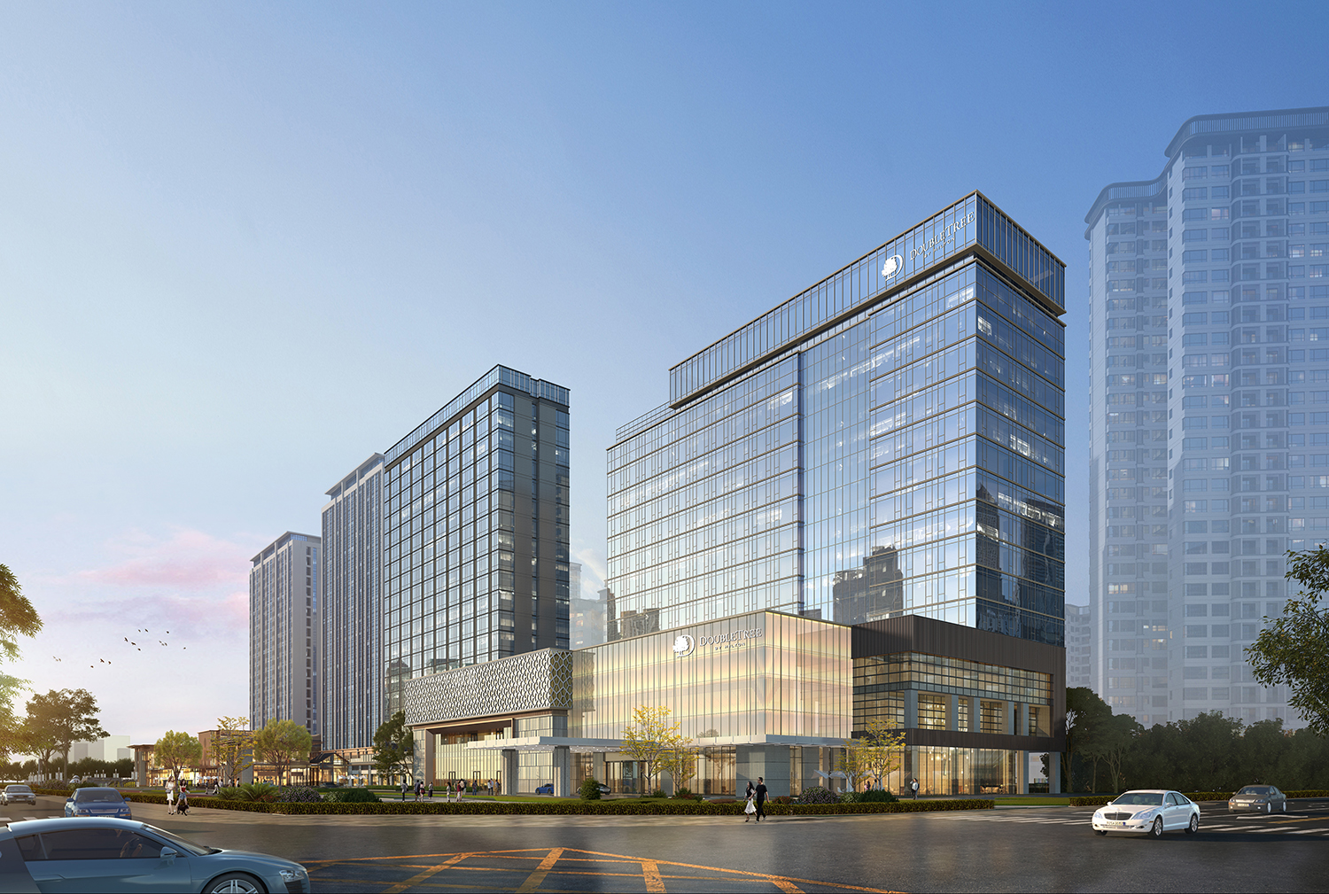 項目位于成都新型城鎮(zhèn)化規(guī)劃“東進(jìn)”區(qū)域的簡陽新城區(qū),地理位置優(yōu)越,臨近迎賓大道與站西大道交叉口。項目定位為希爾頓逸林五星級酒店,外立面采用現(xiàn)代風(fēng)格設(shè)計,通過體塊的疊落和不同材料及紋理的搭配,營造出迎賓大道上一座標(biāo)志性建筑。酒店首層主要功能為接待區(qū)及餐飲區(qū),包括接待大廳、大堂吧、全日餐廳和中餐廳。二層設(shè)有大型宴會廳和會議室,三層為康體中心、健身房、茶樓及屋頂花園等設(shè)施。酒店共設(shè)十層,提供250間客房。項目旨在為天府機(jī)場臨空經(jīng)濟(jì)區(qū)提供高標(biāo)準(zhǔn)的酒店配套設(shè)施。