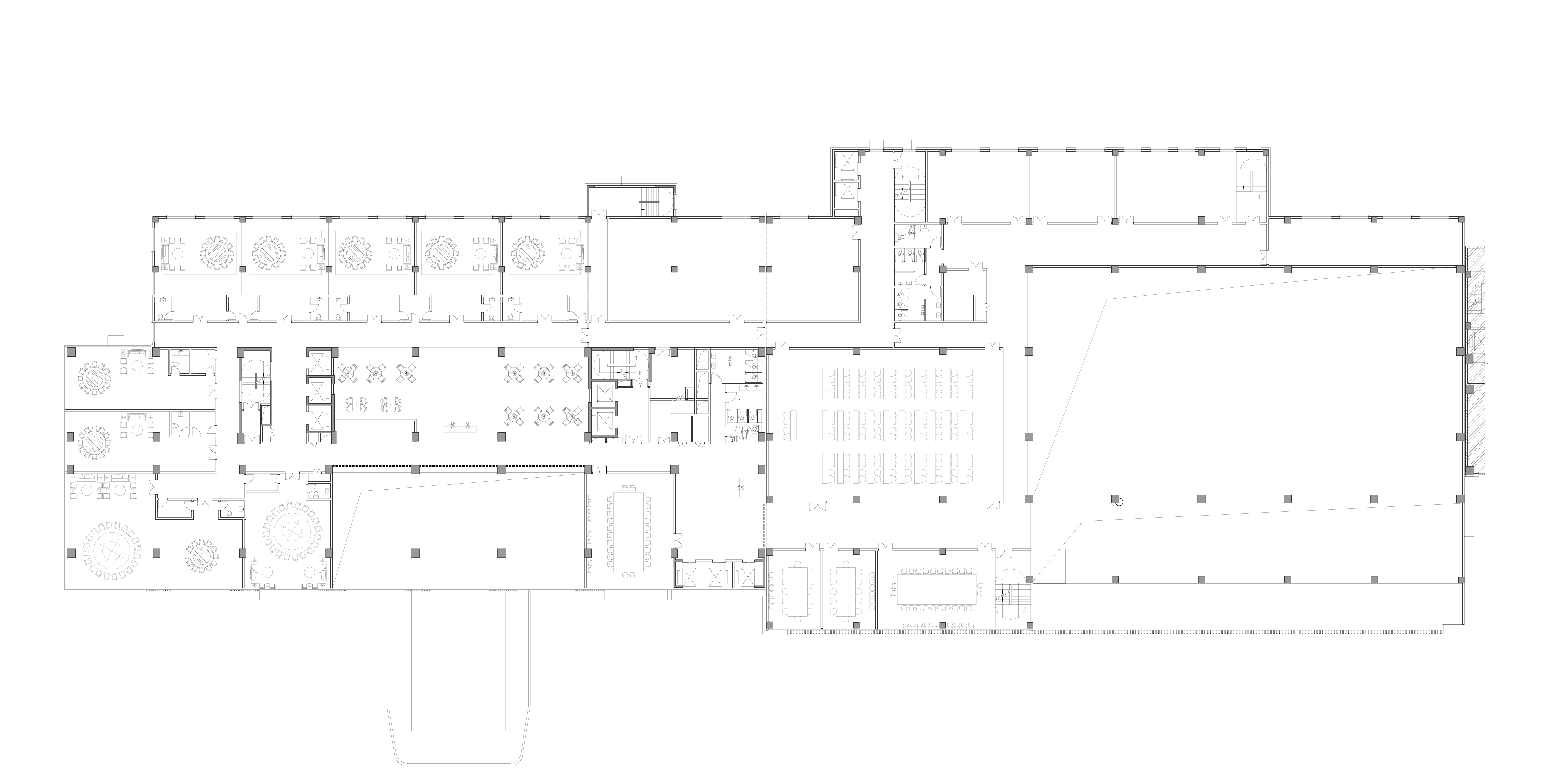 五星級(jí)酒店定位為福朋喜來(lái)登,首層主要功能包括接待區(qū)和餐飲區(qū),包含接待大廳、大堂吧、全日餐廳及大型宴會(huì)廳;二層設(shè)有中餐區(qū)和會(huì)議區(qū);三層設(shè)有康體、健身中心、茶樓和屋頂花園等,客房層共八層,共設(shè)208間客房。商業(yè)酒店共六層,設(shè)96間客房。商業(yè)街區(qū)為兩層布局,為酒店及周邊社區(qū)提供完善的配套服務(wù)。
