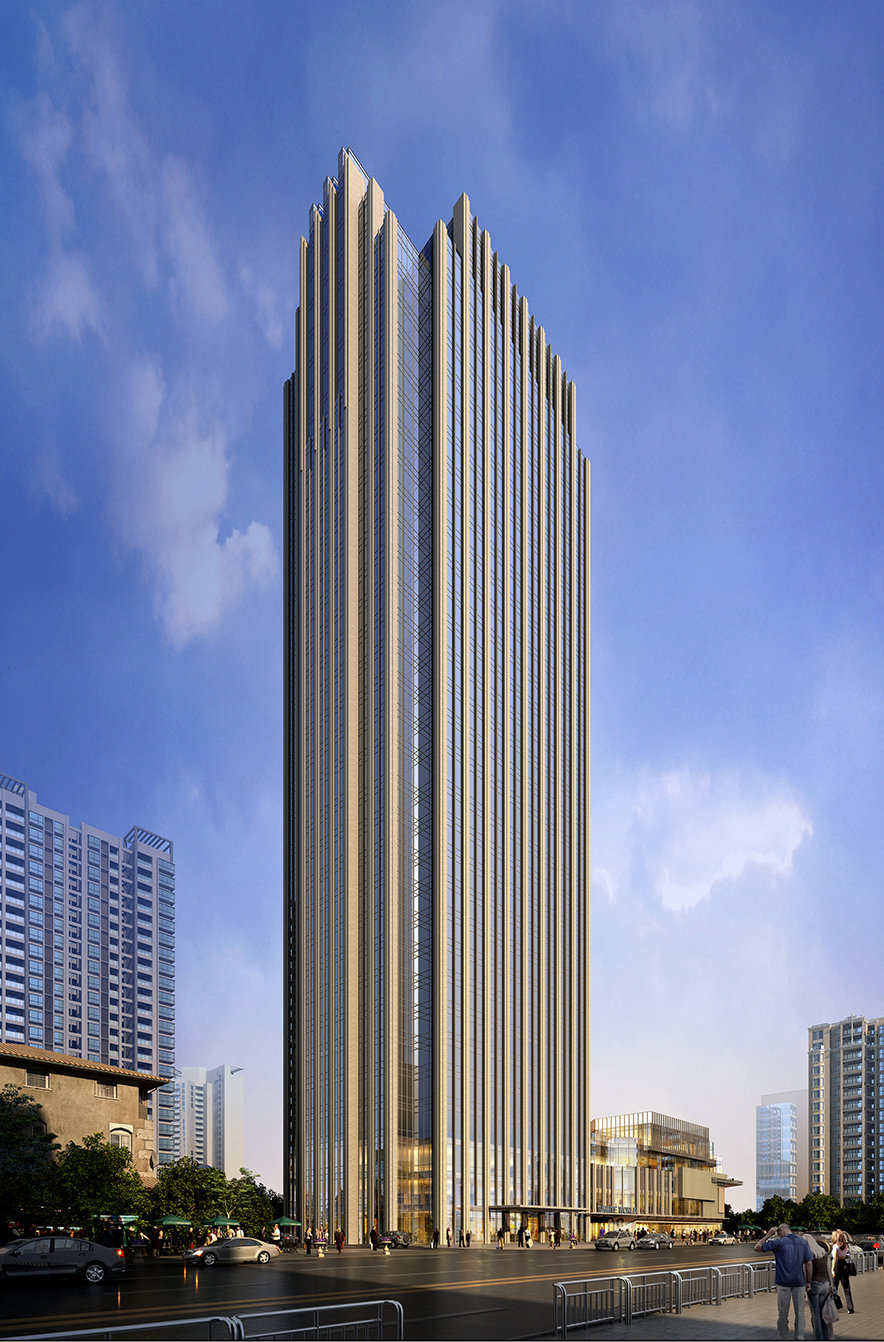 項(xiàng)目位于成都市成華區(qū),一環(huán)路與水碾河路交叉口。根據(jù)場地特點(diǎn),力求充分利用基地的自然條件,在臨一環(huán)路和水碾河路兩條主要市政道路一側(cè)設(shè)置商業(yè)區(qū)。辦公主入口位于北側(cè),緊鄰一環(huán)路,辦公建筑主要為南北朝向,確保良好的日照和通風(fēng)條件。酒店主入口設(shè)置在東南側(cè),鄰近水碾河路,環(huán)境鬧中取靜。酒店每層平面設(shè)計(jì)都能充分利用自然通風(fēng)與采光,并提供優(yōu)良的視野;酒店配套設(shè)施齊全,功能布局合理,交通流線緊湊高效。建筑采用和諧的色彩,高雅現(xiàn)代的設(shè)計(jì)風(fēng)格,既簡潔大方,又親切宜人。同時(shí),建筑師運(yùn)用經(jīng)典元素展現(xiàn)建筑作為歷史見證者所蘊(yùn)含的文化意義。