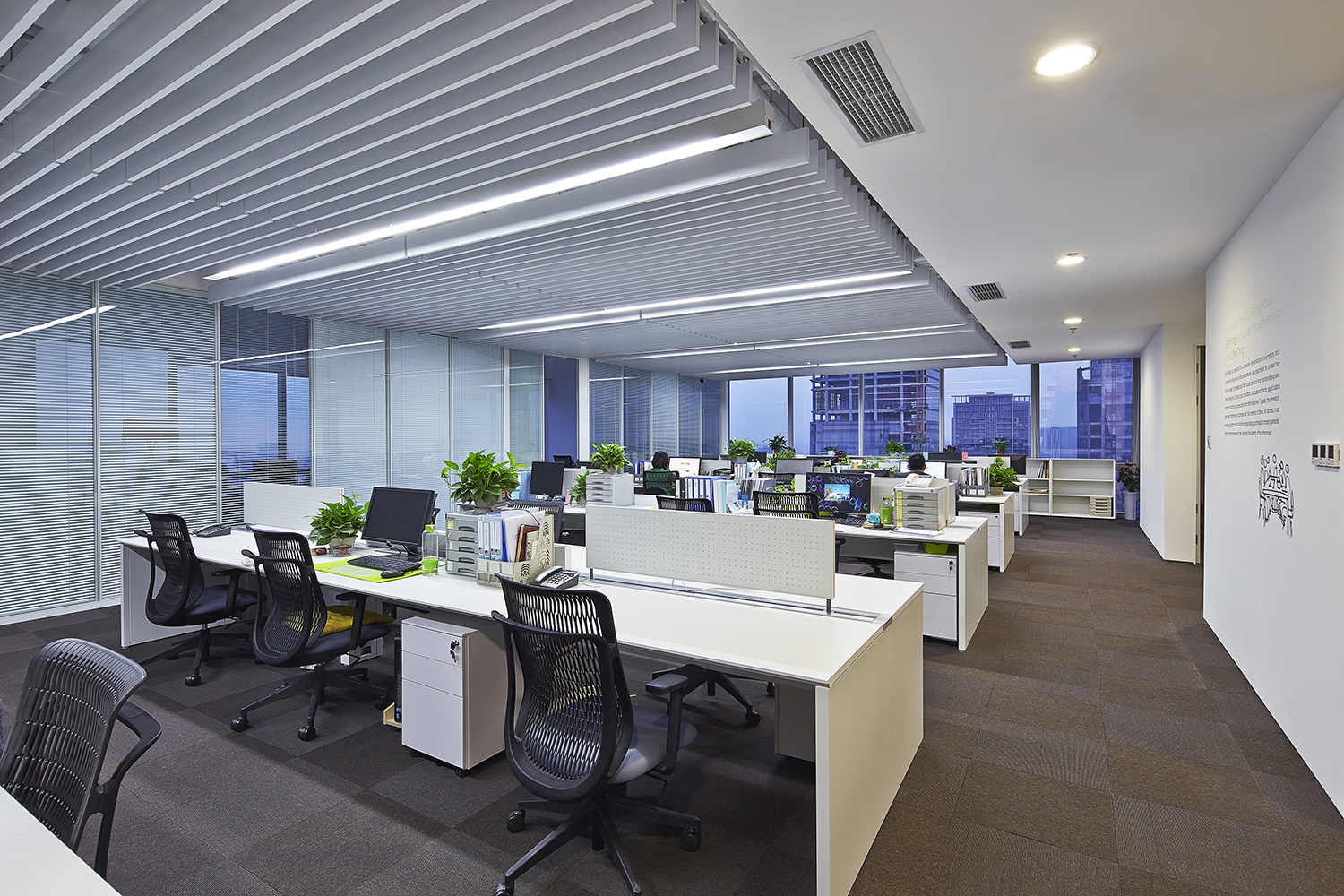 綠色:本案設計秉執(zhí)“綠色”環(huán)境概念,強調(diào)設計中人與環(huán)境的和諧關(guān)系。大量采用可回收材料,高架地板系統(tǒng)避免施工中的粉塵污染及濕作業(yè),與供應商共同研發(fā)“WORK STATION”(工作站)系統(tǒng),提供最佳的人體工程學解決方案。在工作區(qū)周圍設置大量磁力白板,降低能耗。呈現(xiàn)真正的“綠色”工作空間。
