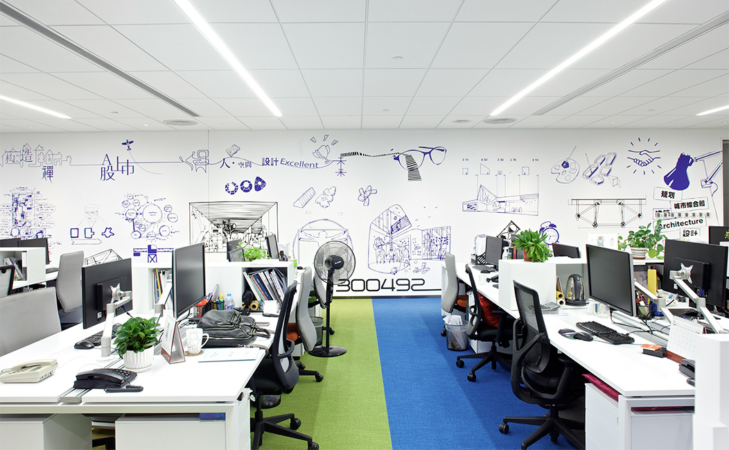 項(xiàng)目的辦公家具全部采用全球第一大辦公家具品牌Steelsace提供,地毯為全球第一大塊毯SHAW提供, 另外還使用了德國(guó)旭格的推拉門、英國(guó)索恩THORN的燈具、星牌優(yōu)時(shí)吉的礦棉板等,力求打造高效、靈活、科技、環(huán)保的辦公空間。墻面采用絲網(wǎng)印刷技術(shù), 設(shè)置拳擊沙袋區(qū),這些既體現(xiàn)了企業(yè)文化,同時(shí)也達(dá)到辦公環(huán)境與家具、地毯的渾然天成,增強(qiáng)了員工工作中的愉悅度。