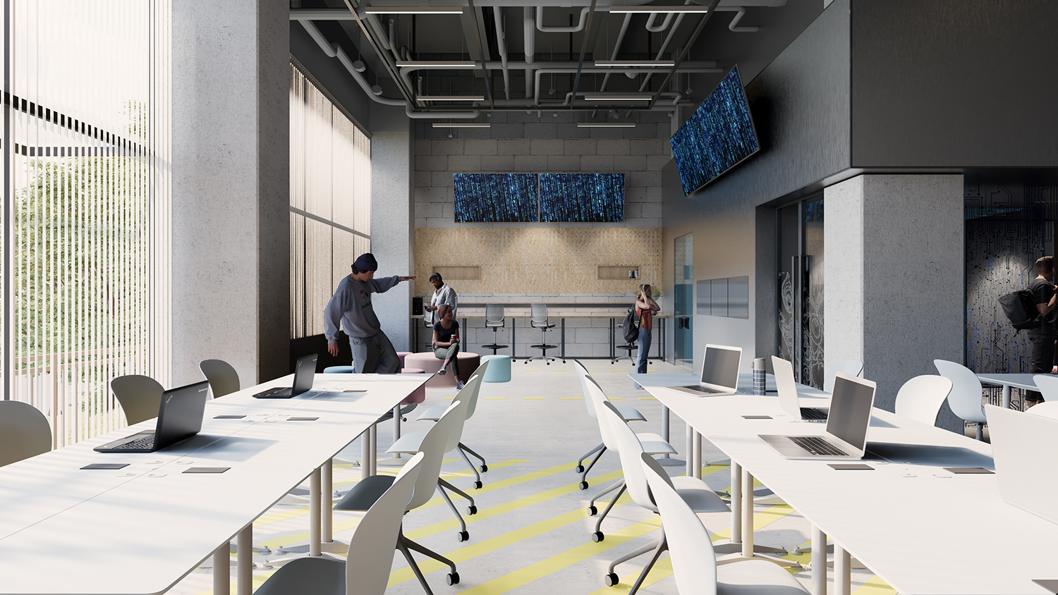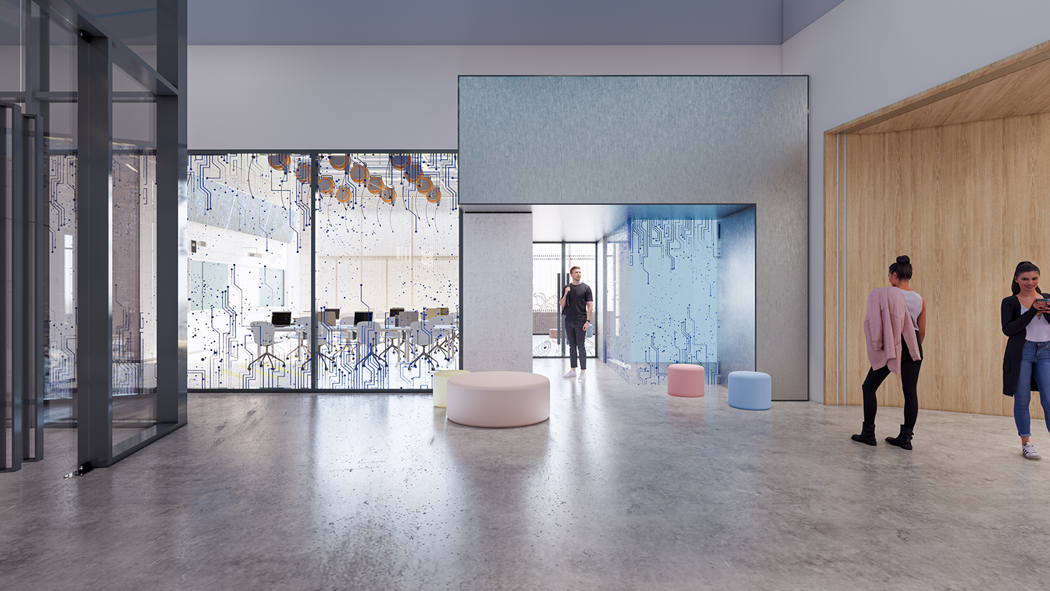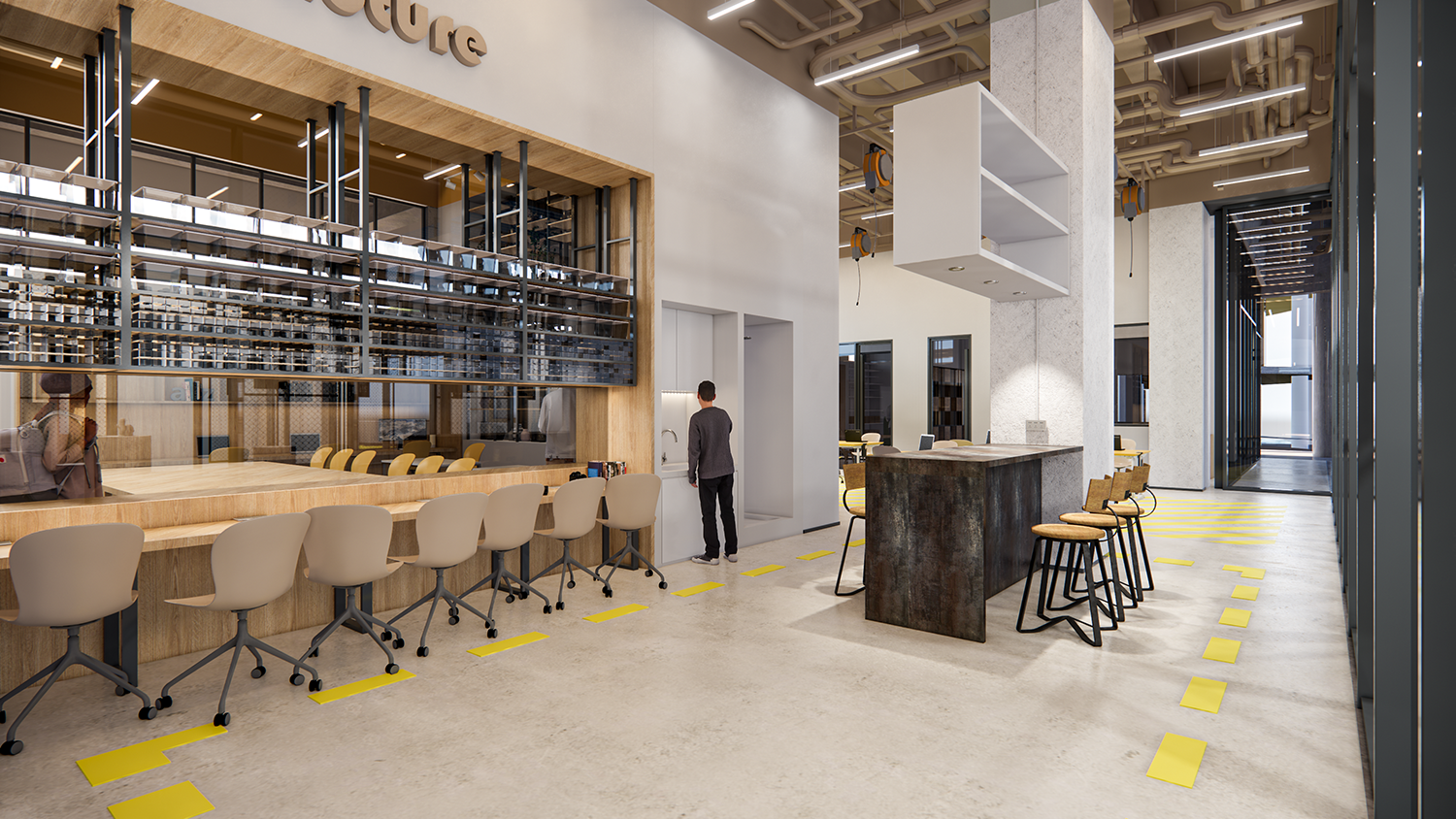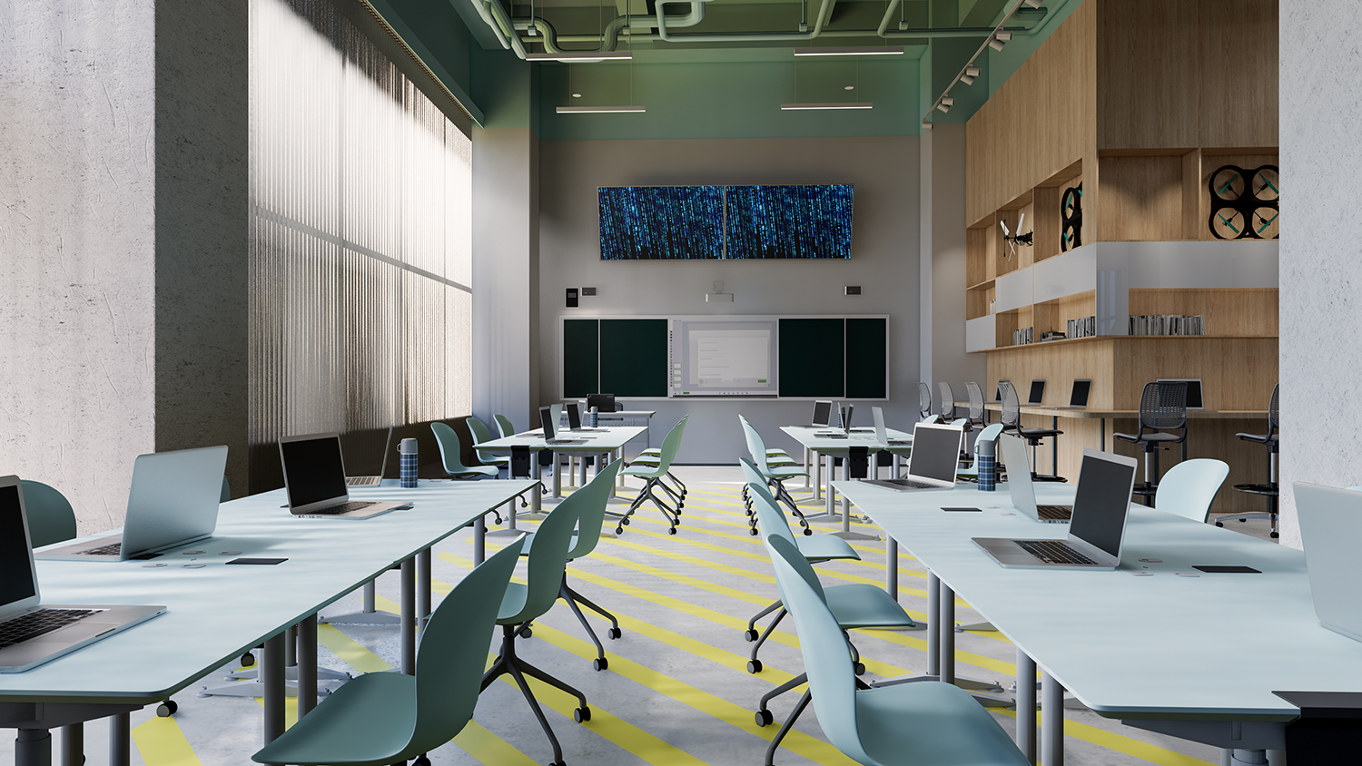 項(xiàng)目是一個先進(jìn)的科學(xué)和藝術(shù)探索中心,空間包括智能制造工坊,機(jī)器人工坊,時尚藝術(shù)工坊,人工智能工坊,數(shù)字音視頻工坊,生物探索花園,學(xué)生在這里可以實(shí)現(xiàn)跨學(xué)科學(xué)習(xí)。山鼎設(shè)計結(jié)合工業(yè)風(fēng)和綠色建筑的理念,為孩子們呈現(xiàn)極具現(xiàn)代科技感的空間感受。
