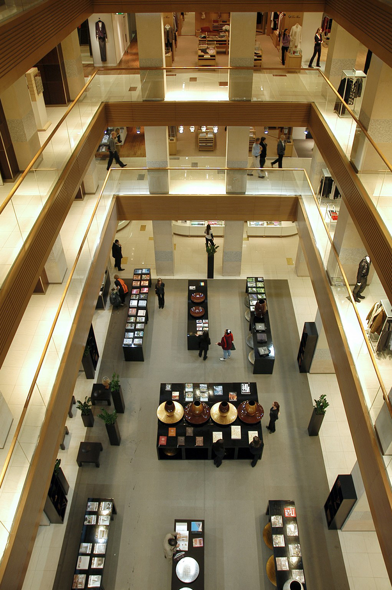 莫斯科蒂勝購(gòu)物中心“真正的百貨商店”的理念使俄羅斯新生代由“共產(chǎn)主義”快速轉(zhuǎn)變到“消費(fèi)主義”。今天,這座總建筑面積 36,000 平方英尺的購(gòu)物中心展示的是高端時(shí)尚奢侈品及世界頂尖設(shè)計(jì)師的品牌,如香奈兒、普拉達(dá)和阿瑪尼。精致的色調(diào)搭配拋光及亞光的石材、馬賽克貼磚,精美的墻面及戲劇性的燈光效果。設(shè)計(jì)滿足了正在增長(zhǎng)的俄羅斯新貴們對(duì)高端奢侈品的訴求。購(gòu)物中心的成功推動(dòng)了它的擴(kuò)張及圣彼得斯堡新區(qū)的發(fā)展。