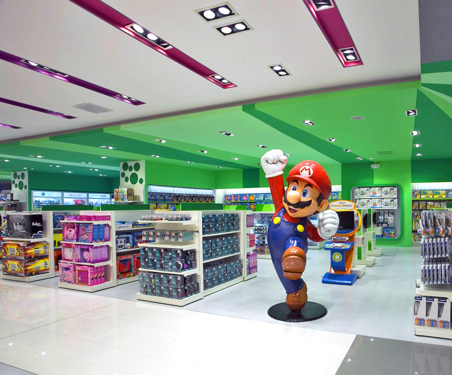 位于菲律賓的玩具王國,是亞洲最大的玩具連鎖店,面積超過 4,000 平方米。此項目既要考慮現(xiàn)有的店面,又要考慮積極增長的計劃,客戶要求我們創(chuàng)建一個更靈活、更高效、更容易推廣的標(biāo)準(zhǔn)店,而且建成后,可以靈活改變售賣商品的形式。為了擁有一個干凈的地面以適應(yīng)不同的商品,大部分的設(shè)計主要針對天花和墻面。采用不斷變化的燈光效果,打造了一個色彩豐富且具有趣味性的活躍空間。中央銷售區(qū)采用上下顛倒的盒子設(shè)計,使商品更加突出。設(shè)計中采用不同的設(shè)計亮點來區(qū)分商品類別,方便購物者選購。玩具王國是門店設(shè)計的一個里程碑。