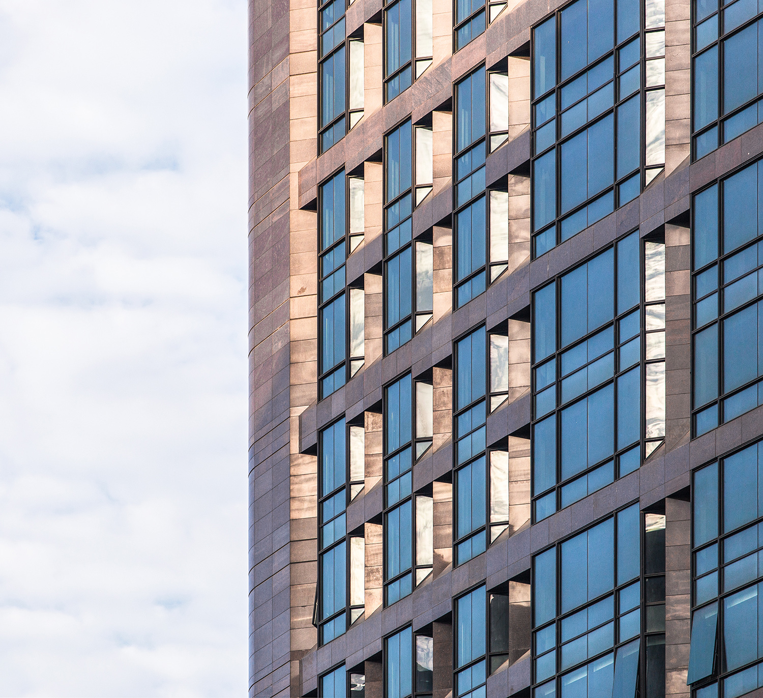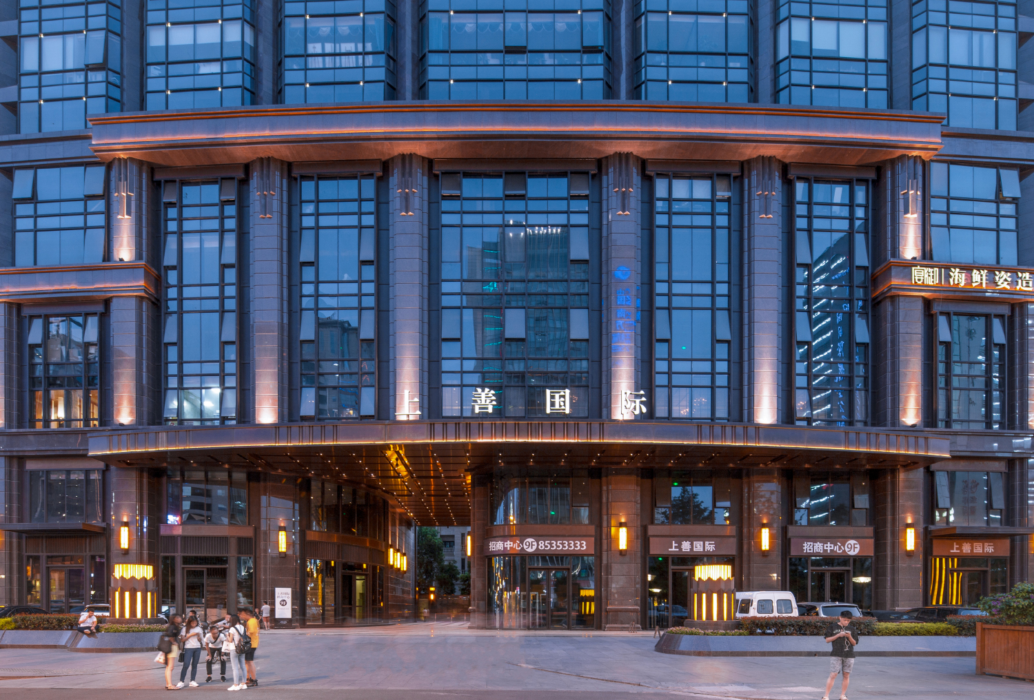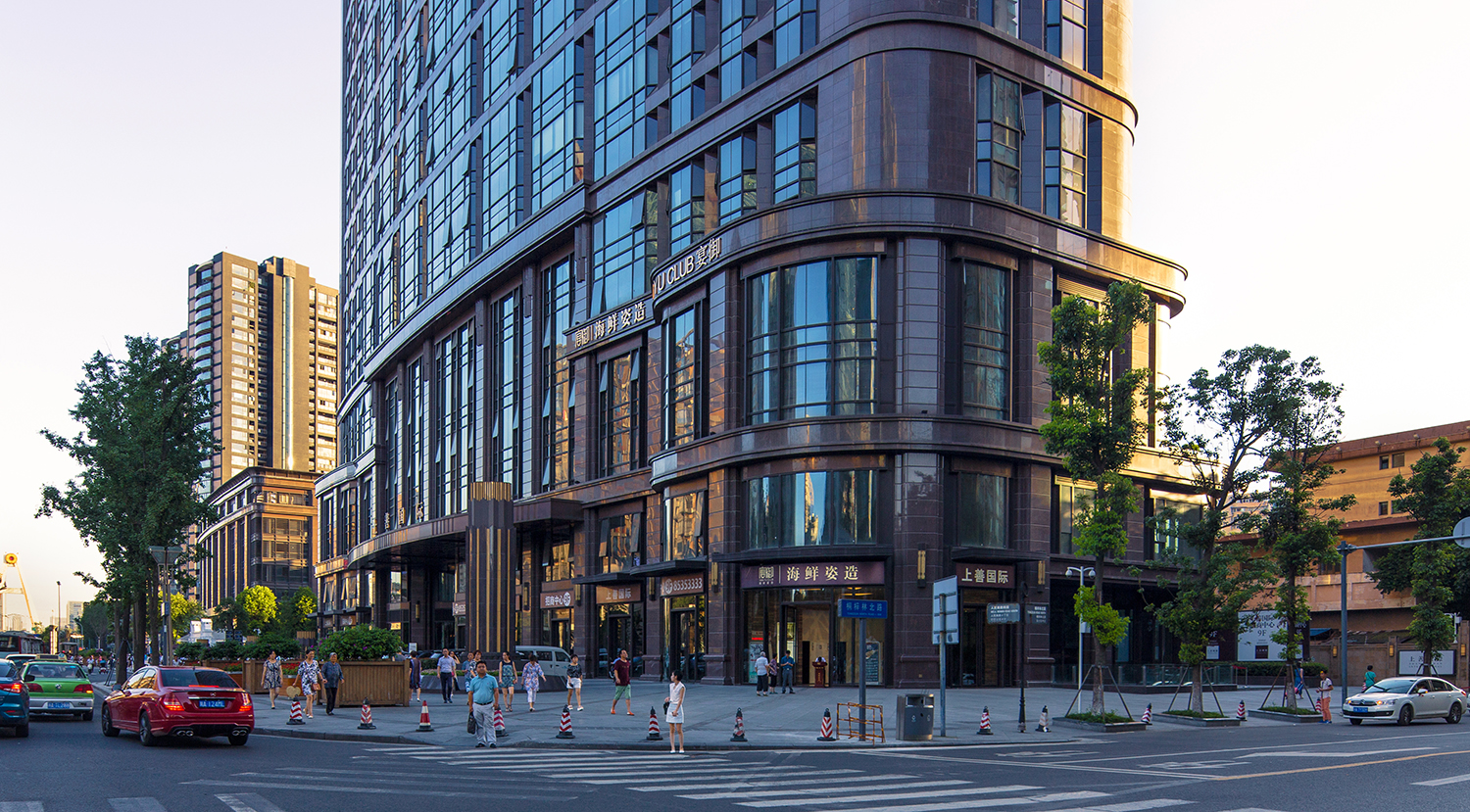 項目位于成都主軸線人民南路的頂級商務區(qū);項目用地規(guī)劃為南北兩個區(qū)域。南側(cè)為多層商務酒店綜合樓,北側(cè)為主體百米高甲級寫字樓配套高端集合式商業(yè)裙房。項目以獨特的新古典建筑語言配合精致的細節(jié)于周邊高端辦公酒店樓群中脫穎而出,達致業(yè)主追求的巔峰品質(zhì)的城市地標。設計創(chuàng)意地解讀了復雜地塊及嚴苛控規(guī)條件的限制;橫向與城市界面優(yōu)雅呼應;豎向上與道路及地鐵主站口的聯(lián)系便捷;充分利用 TOD 的商業(yè)資源。嚴格的設計優(yōu)化過程、BIM 設計交付以及綠色節(jié)能措施保證了項目從內(nèi)到外的頂級全生命周期品質(zhì)與上善的社會高度。