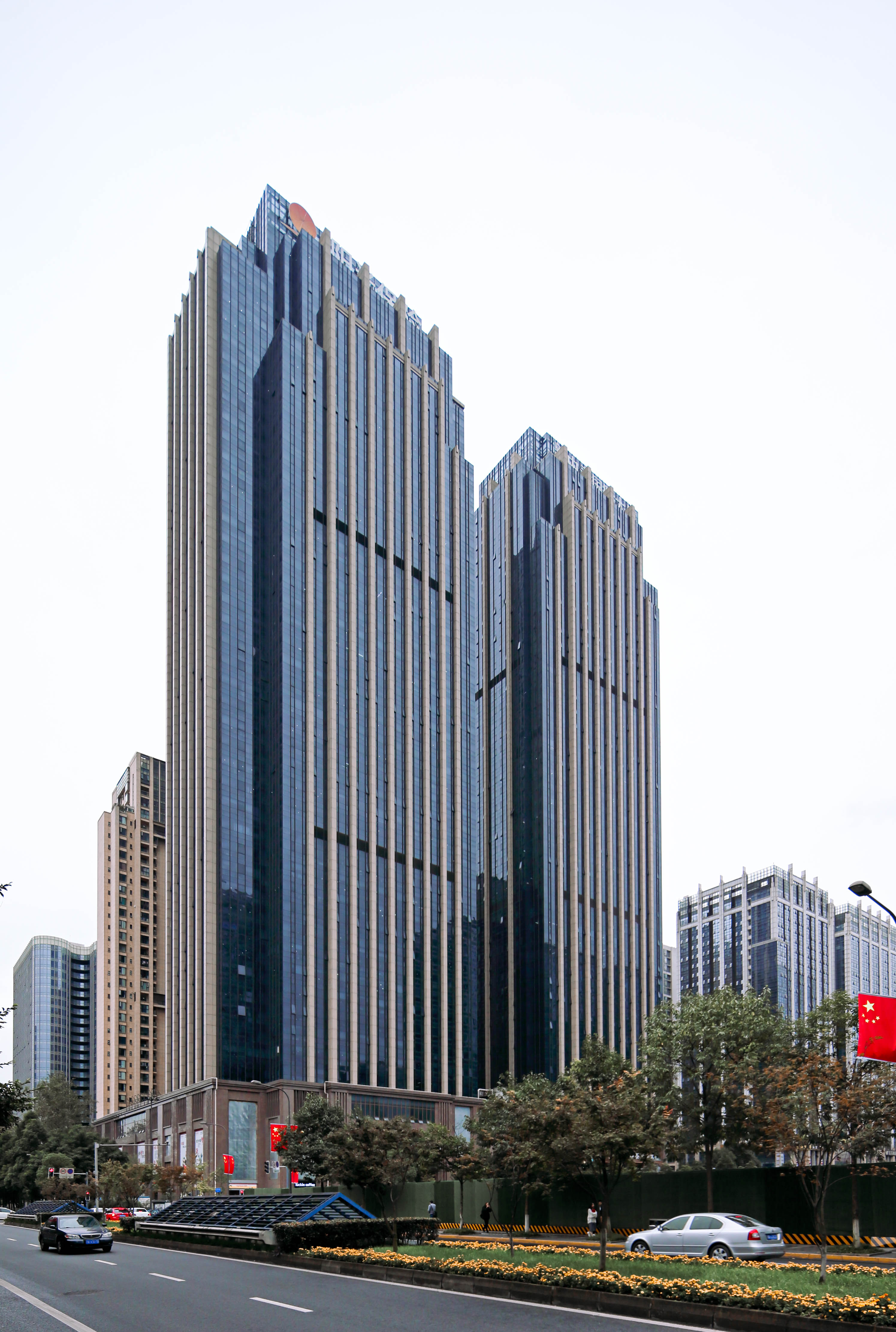 項(xiàng)目位于成都高新區(qū)金融總部商務(wù)區(qū)14號(hào)地塊。項(xiàng)目包含兩棟197m高的甲級(jí)寫字樓和公寓式辦公樓、兩棟115m至128m高的住宅,以及四層商業(yè)裙樓組成的大型商業(yè)綜合體。建筑設(shè)計(jì)采用簡(jiǎn)潔的里面設(shè)計(jì)風(fēng)格,采用頂層錯(cuò)落的手法,盡可能地減小建筑容積率高、體量過大與基地面積過小的矛盾。裝飾性和現(xiàn)代性的設(shè)計(jì)風(fēng)格,體現(xiàn)了建筑更加端莊與挺拔,體現(xiàn)了企業(yè)不斷超越的人文精神和力量。