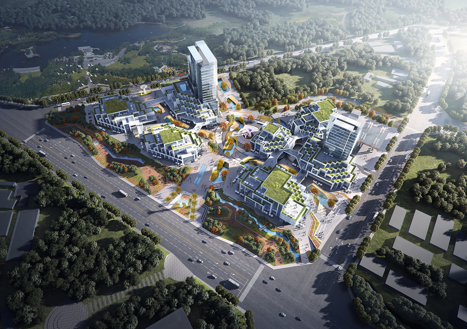 項(xiàng)目旨在打造一個(gè)都市花卉主題休閑度假綜合體,一個(gè)開放的,充滿活力的,綠色低碳花卉文化生態(tài)區(qū)。以峽谷山巒層疊為視覺特色,成為最具天府文化氣質(zhì)的生態(tài)藝術(shù)場(chǎng)所。項(xiàng)目以四川“巴山蜀水”為靈感,于現(xiàn)代建筑中融入山脈起伏、重巒疊嶂之感,賦予建筑靈動(dòng)的氣息。商業(yè)街中部采用類似山谷景觀的形態(tài)處理,給人以生機(jī)勃勃的感受。