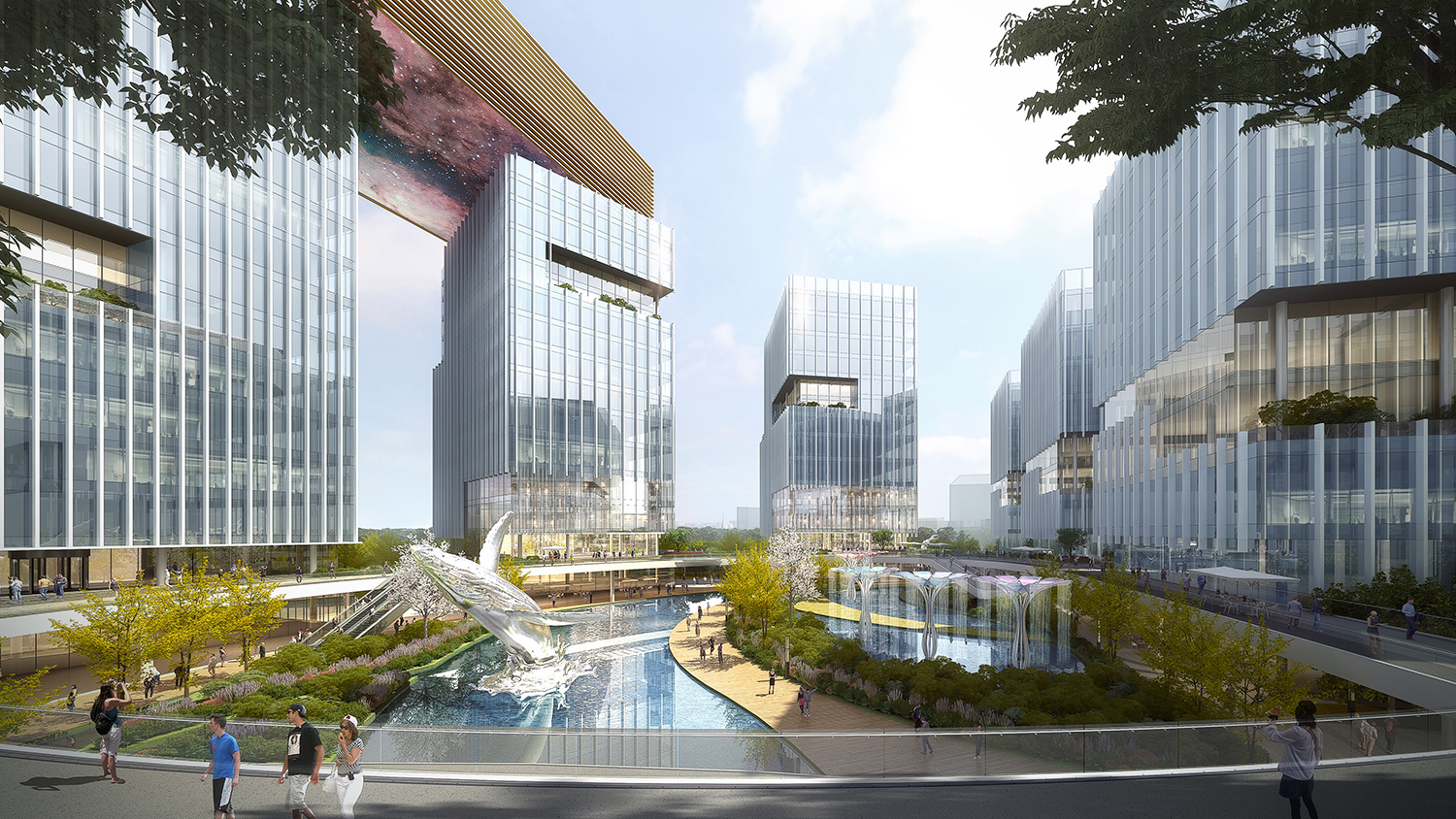 項目位于廣東省深圳市龍華區(qū)。項目西側有觀瀾河濕地公園、大浪市民公園,北邊是中心公園,東側是平湖生態(tài)濕地公園,景觀資源豐富。園區(qū)周邊緊鄰好日子卷煙廠、富安娜龍華工業(yè)園、龍華傳媒科技產(chǎn)業(yè)園、寶能科技園、清湖科技園等國內外知名大型企業(yè)集團等,區(qū)域整體產(chǎn)業(yè)氛圍良好。項目規(guī)劃采用“一軸一帶一心”布局形式,南北主景觀軸打通園區(qū)內部與基地周邊的聯(lián)系,東西次要景觀帶連接一期已建區(qū)域,使得一、二期形成有機統(tǒng)一的整體。中心大花園使整個園區(qū)具有強烈的內聚性,為園區(qū)辦公人員提供休閑娛樂的場地。項目意在打造深圳龍華區(qū)創(chuàng)新街區(qū)標桿,為知識型員工間的創(chuàng)業(yè)和思想交流,提供豐富多元的街區(qū)化城市生活。