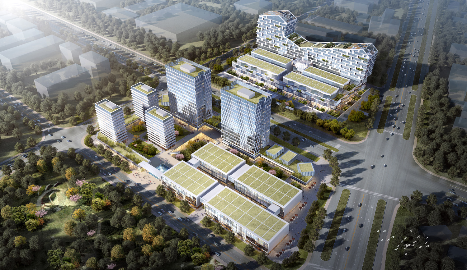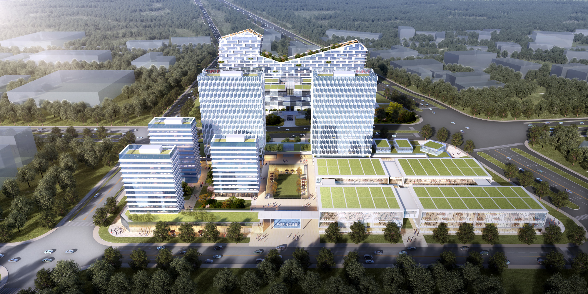 項(xiàng)目位于東莞西部,臨近京港澳高速、湖景大道等,距離觀湖別墅區(qū)500米,橫港水庫(kù)1000米,交通便利,環(huán)境優(yōu)美??萍歼M(jìn)步是未來(lái)發(fā)展的趨勢(shì),而最能代表未來(lái)科技的技術(shù)莫過(guò)于芯片技術(shù),芯片技術(shù)是代表人類的智慧,反映了當(dāng)前科技水平的高低。項(xiàng)目里面設(shè)計(jì)靈感來(lái)源于芯片的電路圖,體現(xiàn)了建筑的科技感和時(shí)代感。項(xiàng)目立面還引用中國(guó)傳統(tǒng)文化中的竹元素,象征著設(shè)計(jì)所倡導(dǎo)的綠色節(jié)能和節(jié)節(jié)生機(jī)。立面點(diǎn)綴與建筑整體形成了一個(gè)充滿活力的、健康的綜合體。