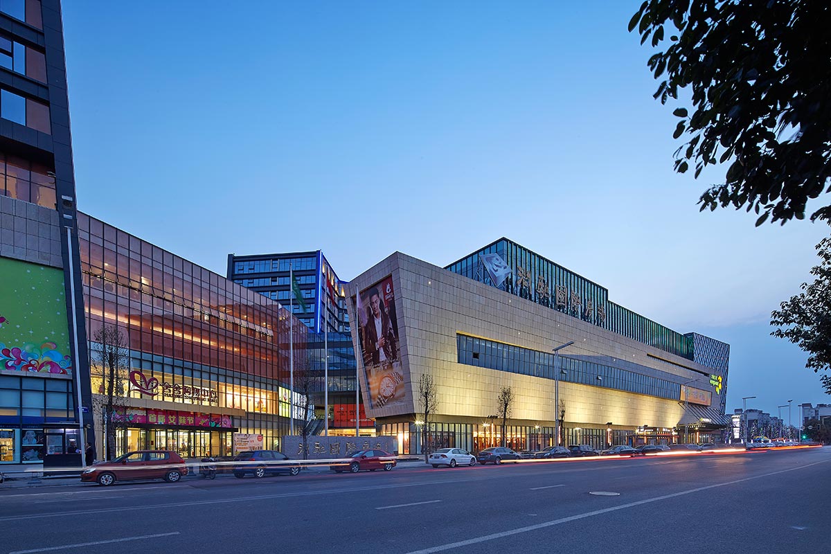 項(xiàng)目以滿足復(fù)合型商業(yè)區(qū)域中的各個(gè)功能空間需求為前提,力圖營造多功能、舒適的購物休閑環(huán)境。商業(yè)街區(qū)的室內(nèi)化設(shè)計(jì)使得國際廣場的商業(yè)品質(zhì)得到了較大提升,更具規(guī)模效應(yīng)。從城市設(shè)計(jì)的角度出發(fā),該項(xiàng)目充分考慮建筑與其周邊環(huán)境的關(guān)系,建筑的形體和城市道路尺度相呼應(yīng)。此外,設(shè)計(jì)中極富雕塑感的建筑體塊形態(tài)與變化的風(fēng)格、各體塊之間的疊合,力圖營造一種濃厚的商業(yè)氛圍。