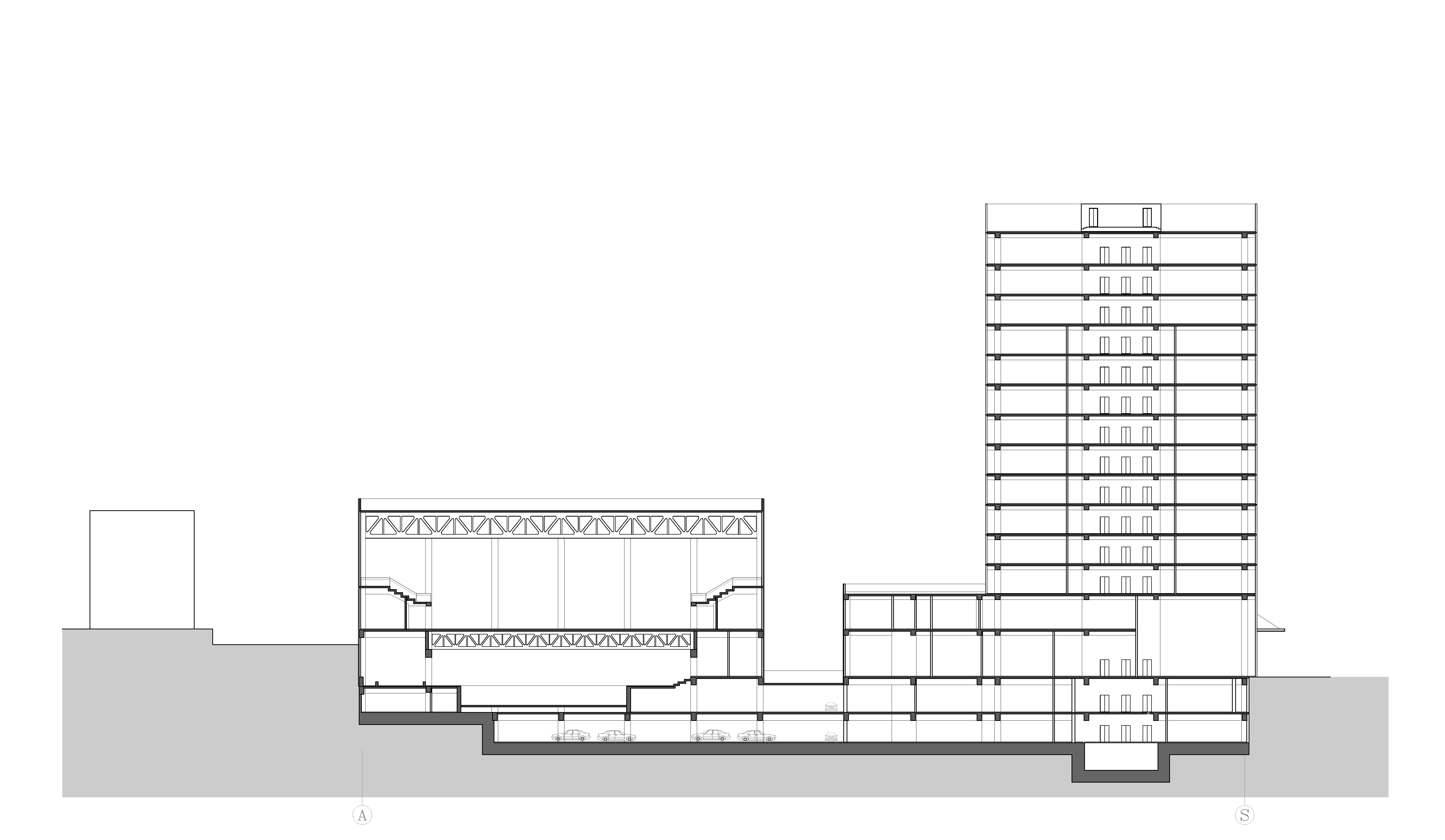 煙臺(tái)市全民健身中心是一座綜合性的全民健身館和購(gòu)物中心的結(jié)合,由內(nèi)外兼顧、分區(qū)明確并聯(lián)系方便的一組完整的建筑空間組成,通過(guò)公共空間聯(lián)通到北側(cè)開(kāi)放的體育文化休閑廣場(chǎng)。其中羽毛球館與籃球館對(duì)于內(nèi)部空間高度有特殊要求,設(shè)置于健身中心的南側(cè),兩層通高設(shè)計(jì),并在每一層設(shè)置休息區(qū)與更衣淋浴室等配套功能,與北側(cè)的購(gòu)物中心通過(guò)體育大廳相結(jié)合,使其形成一個(gè)大型的體育文化購(gòu)物中心,人們游走其中,或運(yùn)動(dòng)、或休憩,成為煙臺(tái)市民健身娛樂(lè)、運(yùn)動(dòng)休閑的好去處。