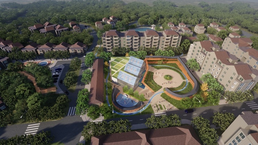項(xiàng)目借鑒成都傳統(tǒng)建筑元素,打造巴渝原鄉(xiāng)生活。項(xiàng)目的天空綠色農(nóng)場是世界上首個(gè)低碳,液壓能推動(dòng)的城市垂直農(nóng)場系統(tǒng)。針對日益加劇的城市土地、生態(tài)資源等問題,該技術(shù)旨在用盡量少的空間,能源來種植更多,更安全的食材, 該系統(tǒng)在又高又窄的A字形結(jié)構(gòu)上種植生菜、菠菜以及各種亞洲綠色蔬菜,該結(jié)構(gòu)會(huì)慢慢地轉(zhuǎn)動(dòng)植物,就像在摩天輪上一樣,以確保他們得到足夠的陽光。項(xiàng)目為居民提供交流活動(dòng)場所,全年不間斷鄰里活動(dòng)的組織增強(qiáng)居民歸屬感。同時(shí),項(xiàng)目注重整合周圍資源,為不同年齡的人提供活動(dòng)場所,集休閑,運(yùn)動(dòng)于一身。